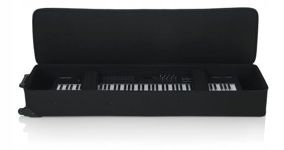 4 Незважаючи на низьку вагу лінії Gator GKS, вони гарантують відмінний захист інструменту. Два регульовані м'які ремені відповідають за стабілізацію клавіатури на обкладинці. Для більш зручних маніпуляцій корпус був обладнаний колесами та телескопічною ручкою.
