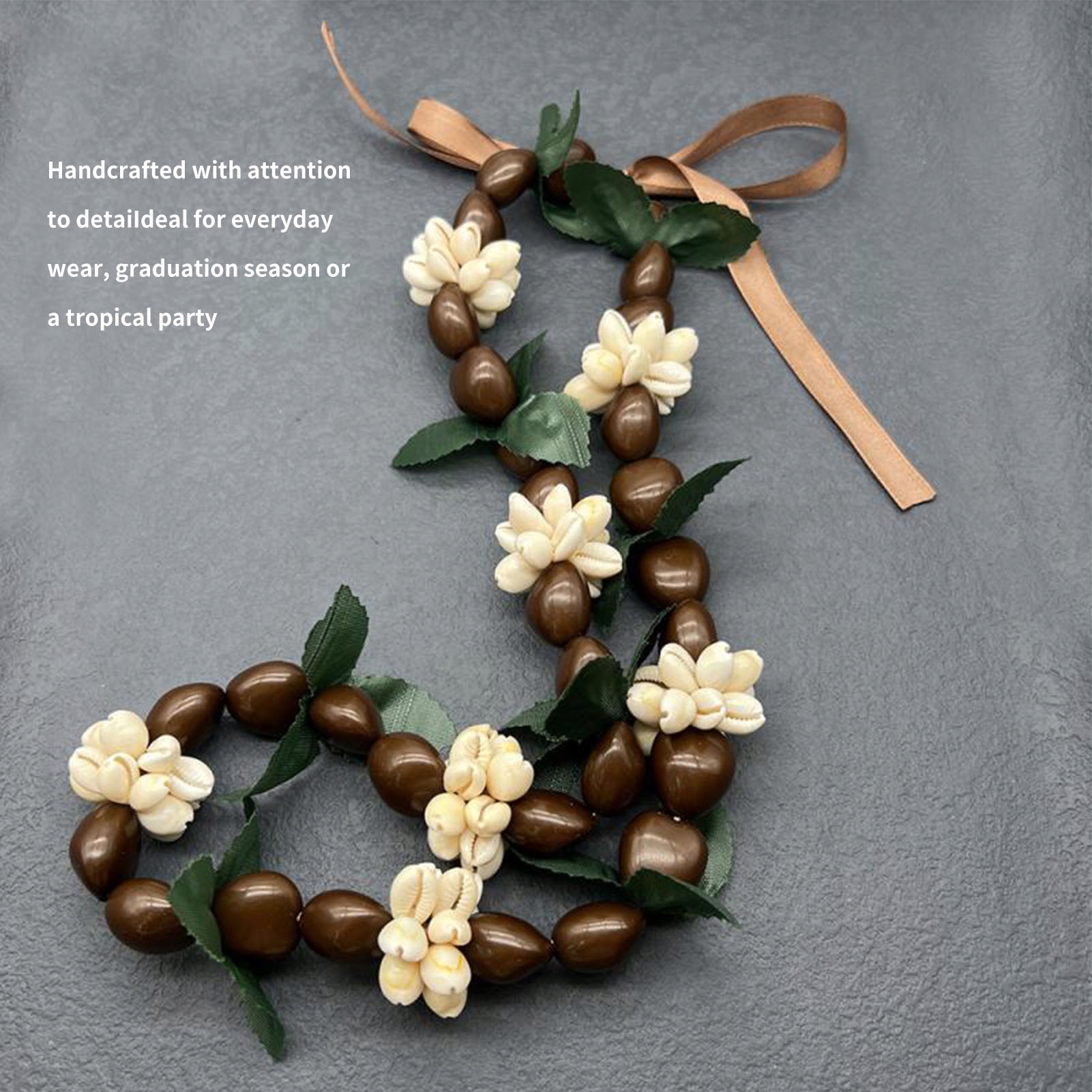 2. Багатофункціональний спосіб носіння: модне гавайське намисто з лейю з горіхами kukui можна носити як квітковий гірлянд або лежані шари як намисто з товстих намистин.