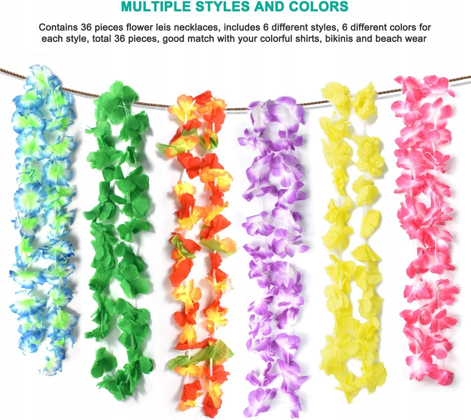 - 36 гавайських квіткових ланцюжків - включає 36 гавайських квіткових ланцюжків у 6 різних стилях, 6 різних кольорів для кожного стилю, всього 36 штук ; Ці барвисті гавайські квіти добре підійдуть для вашої острівної теми. Висока якість, довговічність і безпека