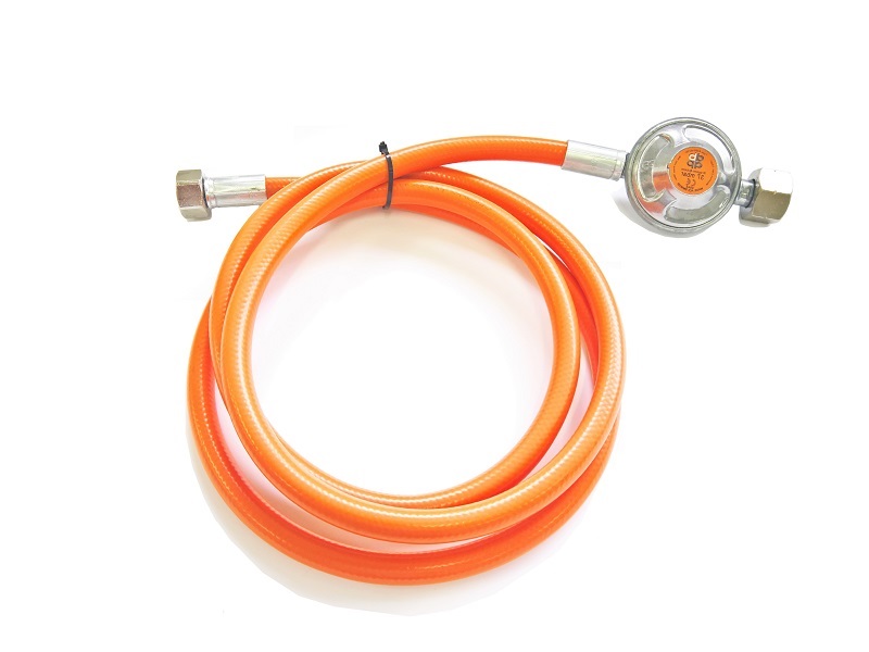 шланг 150 см -3 -шланг газового шланга з поліефірним арматурою, стійким до сліз, стійким. Виготовлений із спеціальних компонентів ПВХ та різних типів гуми. Він має схвалення та сертифікат дослідження "Zetom" та сертифікат. Помаранчевий.