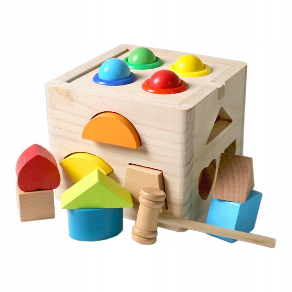 чудова розвиваюча іграшка для дітей дошкільного віку, яка заохочує сортувати та розпізнавати форму, а розміщуючи блоки у відповідні отвори, ви зможете побудувати скриню зі скарбами.