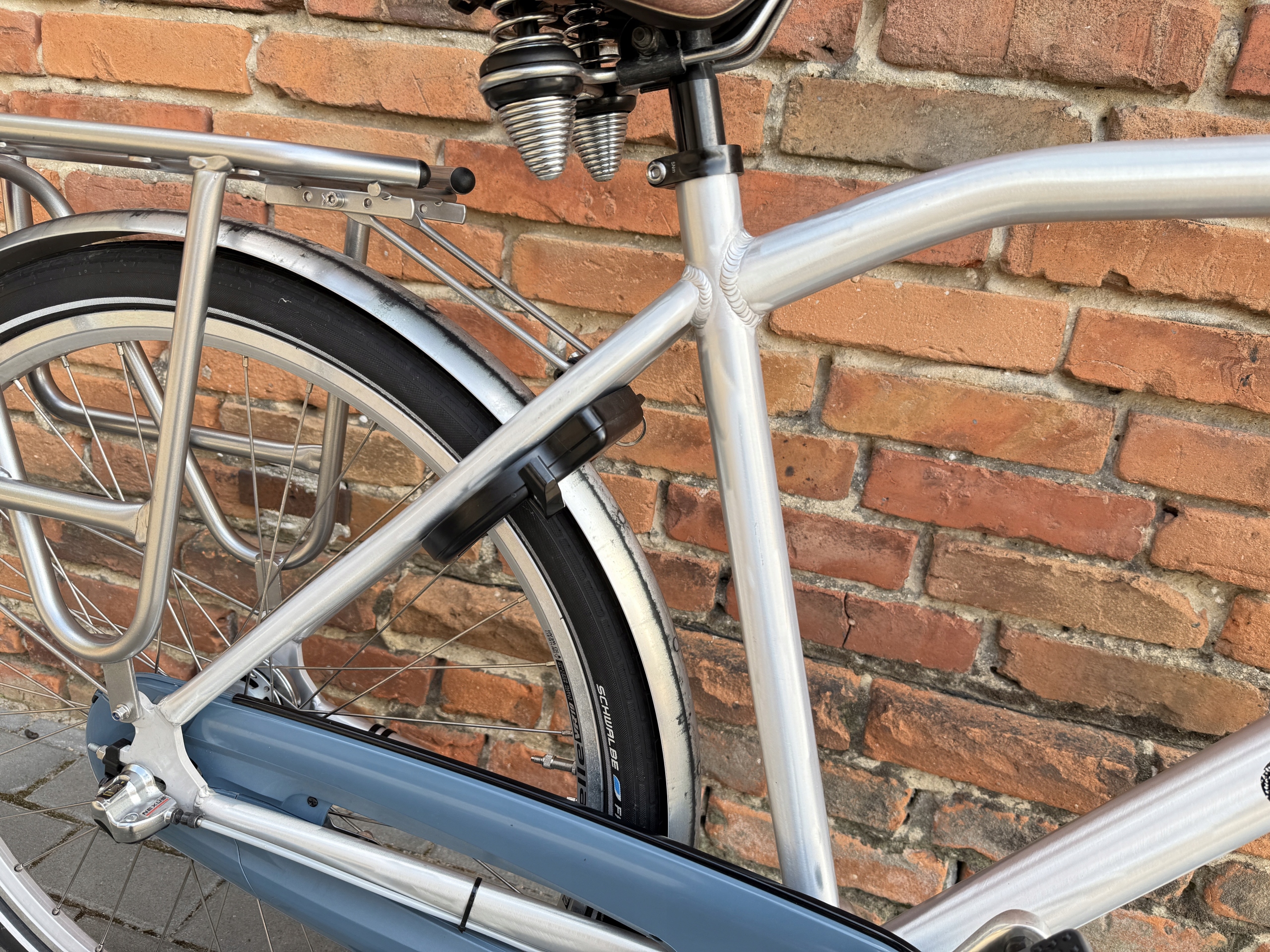 Стильний та дуже комфортний міський велосипед. Обладнання: 3 передачі в концентраторі Shimano Nexus, Dynamo в концентраторі, гальмами з роликом, світлодіодним освітленням, повною кришкою ланцюга, замком заднього колеса, дуже зручним Selle Royal (гель), алюмінієвою рамою, суцільною двома опорами, Schwalbe Frank Frank Frank з відбиваючою смужкою 28x2.0 в хорошій стоячій стоячці