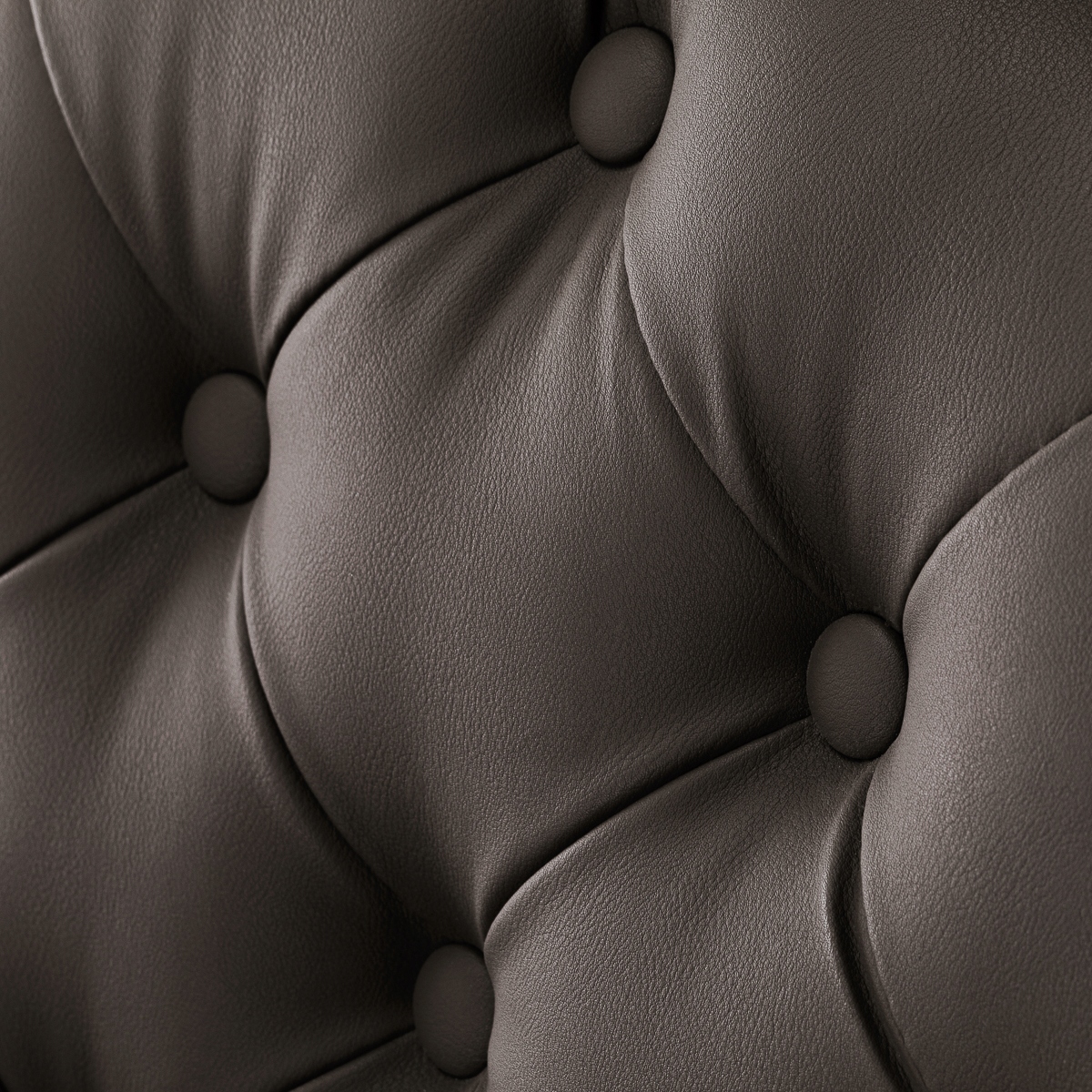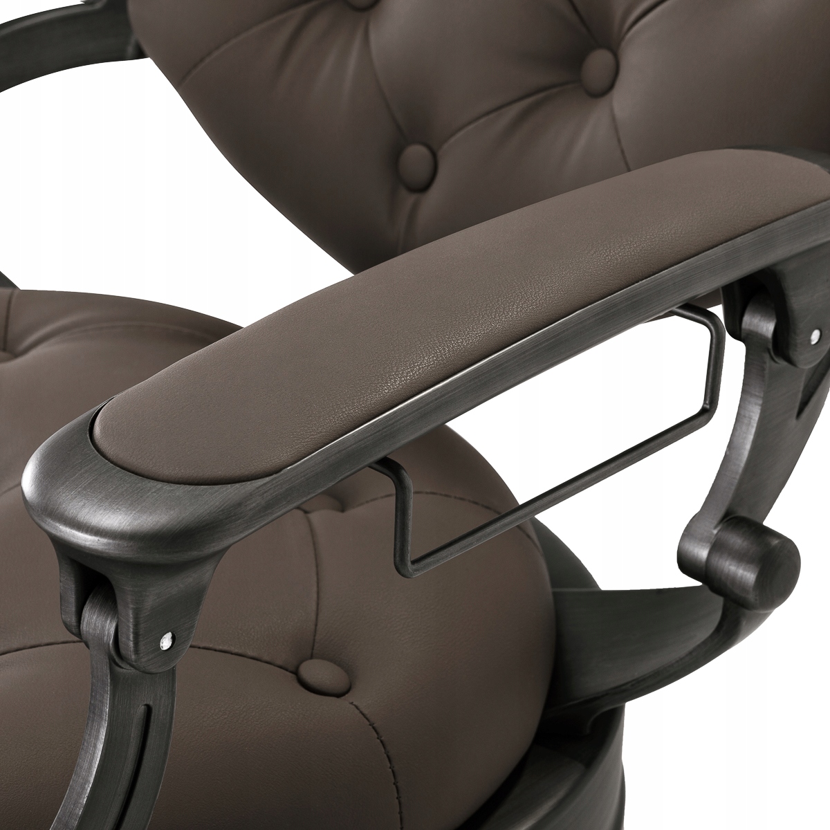 Суцільна конструкція основи забезпечує стабільність та високий комфорт використання. Наповнення сидіння міцною, стійкою до деформаційної піни та оббивки, виготовленої з приємної синтетичної шкіри з матовим покриттям, забезпечуйте тривалості меблів та її комфортного використання протягом тривалого часу . Використовувані матеріали також роблять обладнання вологу, міцною та простим в чищенні . Покриття в відтінках коричневого з квілінг та декоративними кнопками та прикрашеною кісткою надають йому унікальний персонаж. Стілець із характерним дизайном посилаючись на старовинний стиль , ідеально підходить до клімату перукарських салонів, підкреслюючи їх унікальну атмосферу.