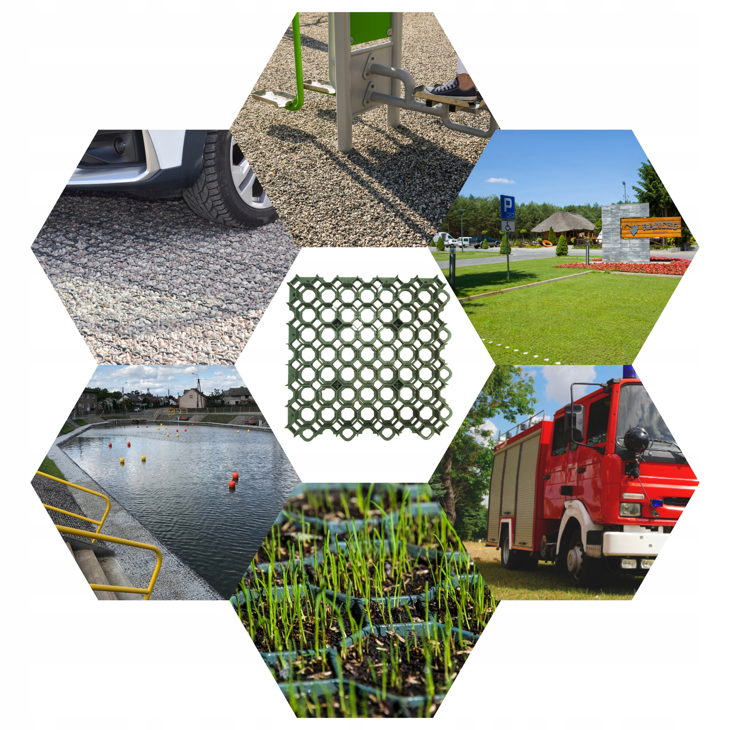 Сітки STELLA GREEN, також відомі як екологічні сітки або паркувальні (газонні) сітки, призначені для зміцнення та стабілізації ґрунту, одночасно зберігаючи вільну циркуляцію води та підтримуючи біологічно активну поверхню (до 96 %.Дорожня сітка є чудовою альтернативою бруківці, асфальту чи бетону (бетонним ажурним плитам), де потрібне збереження біологічно активного покриття. Садові решітки – це не лише ідеальне рішення для розвитку зелених насаджень та зміцнення схилів чи інших поверхонь.