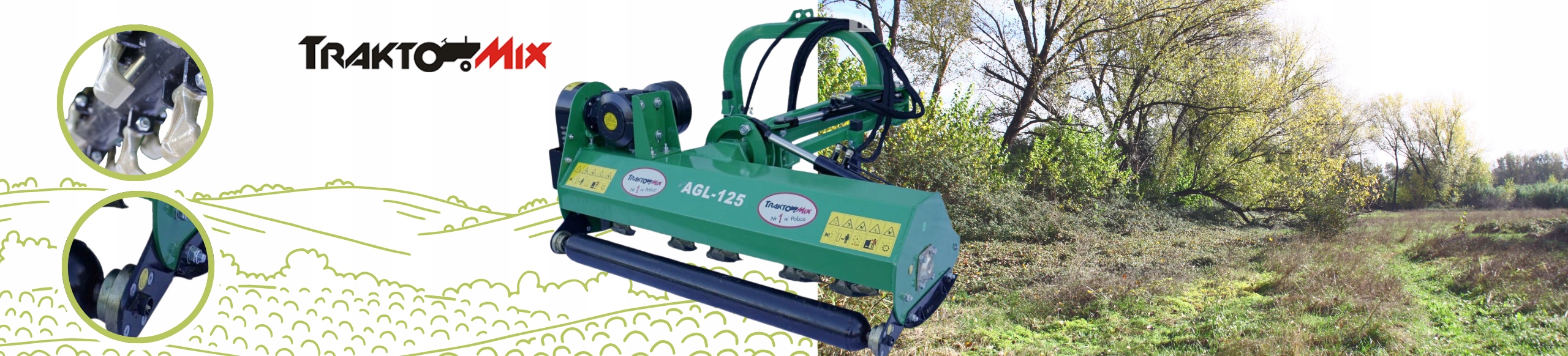 КОСАРКА FLAILER (мульчувальна) фірми TRX із серії AGL (модель AGL 125 b >) це штангова косарка середнього класу з гідравлічним регулюванням висунення та нахилу косильного модуля.