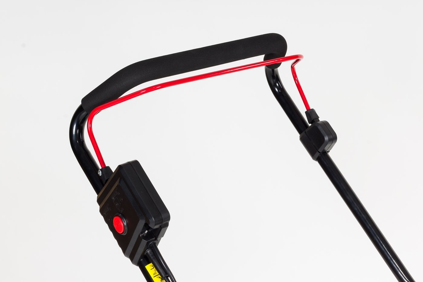 Косарка оснащена сучасним асинхронним двигуном з високою номінальною потужністю 1800 Вт - за рахунок відсутності щіток цей двигун тихіше і набагато менш безаварійний, ніж колекторний. Використання безщіткового двигуна забезпечує зниження струму, що викликає теплогенерацію - підвищення температури на корпусі зменшується навіть під час інтенсивного використання в саду. Крім того, він практично безвідмовний, не зношується механічно, має більш просту конструкцію і високий ККД - високий крутний момент двигуна. Великою перевагою пристрою є спосіб його запуску - просто утримуйте важіль газу та натисніть кнопку «СТАРТ», і ваша газонокосарка почне роботу в саду із запалом! Косарка з електродвигуном ідеально підходить для скошування схилів.