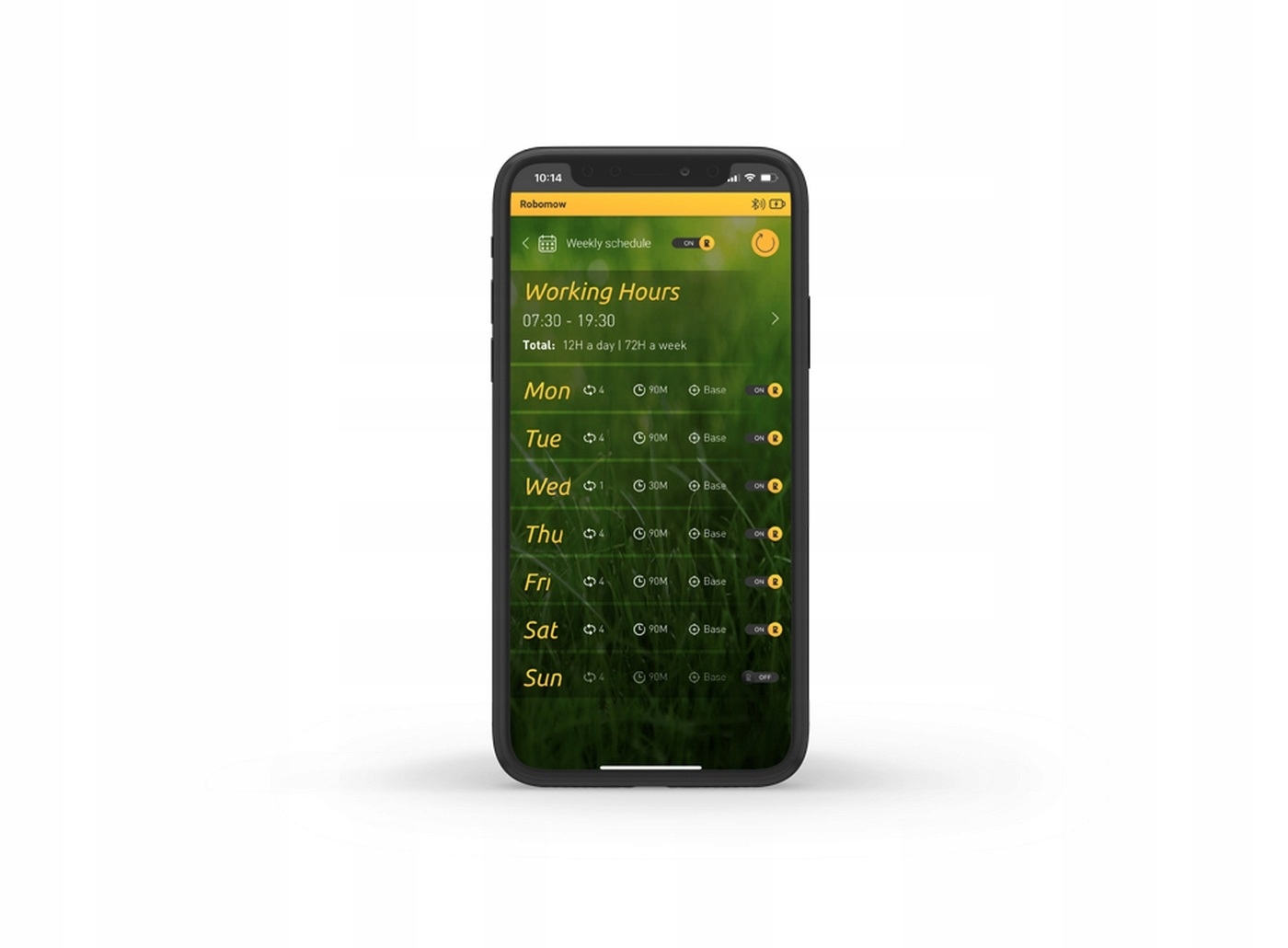 Завдяки новітнім технологіям та інтелектуальному програмному забезпеченню Ви визначаєте, в які дні та о котрій годині трава слід косити . Це дуже важливо, наприклад, у випадку наявної системи поливу саду. Тоді розклад слід налаштувати так, щоб обидві інсталяції не конфліктували одна з одною. Крім того, ми часто хочемо повноцінно використовувати свій сад у вихідні, тому надзвичайно популярно встановлювати час неактивності робота в суботу та неділю. Машина автоматично розраховує кількість часу, необхідного для косіння газону.