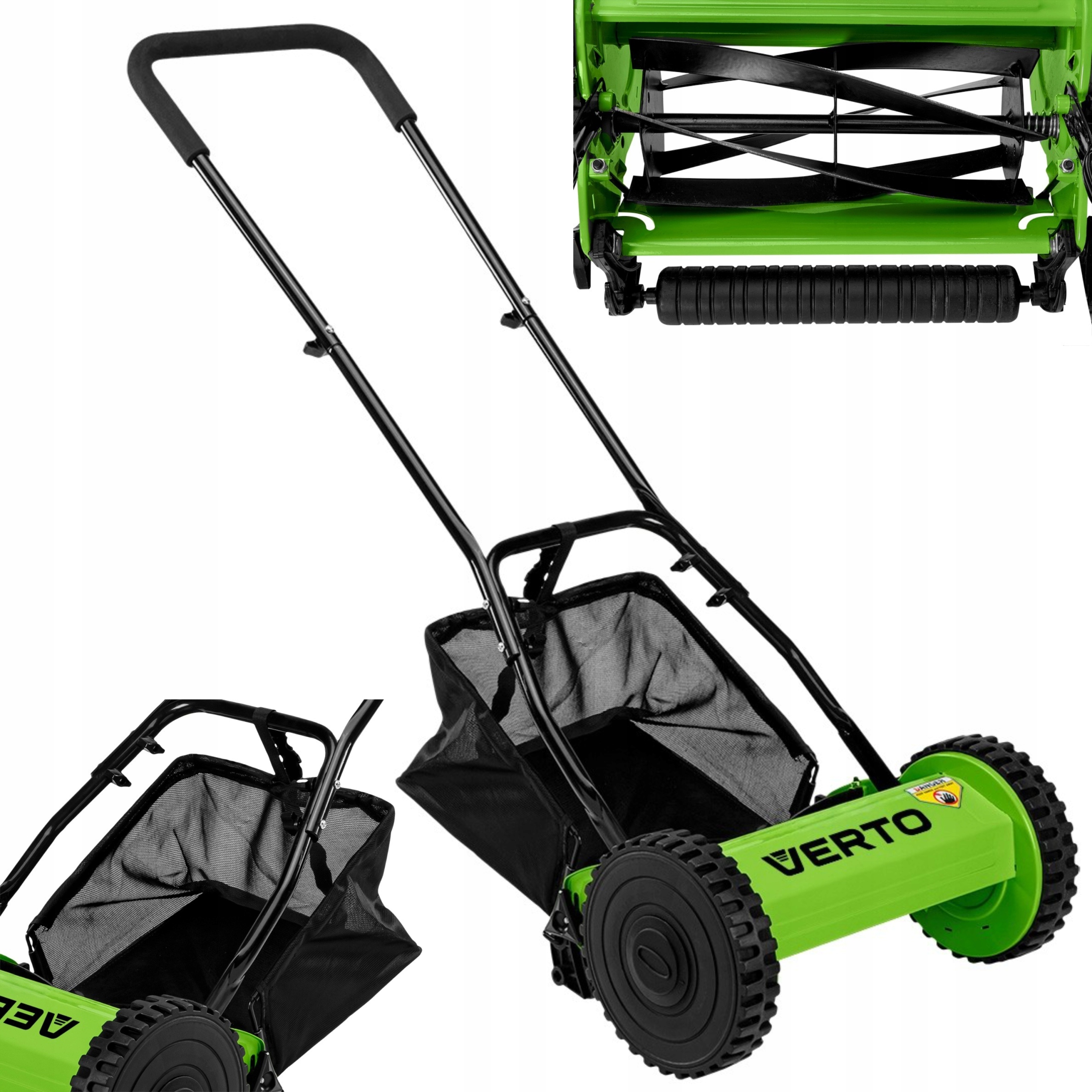 Ручна косарка 12 дюймів/ 30 см 15G350 VERTO є екологічною та компактною альтернативою великим електричним або бензиновим газонокосаркам. Пропонується спеціально для невеликих ділянок, домашніх газонів або невеликих садів, які потребують частого догляду. Косарка легка і має місткий кошик на 16 літрів. Ви можете зручно зберігати його, не турбуючись, що він займе забагато місця.