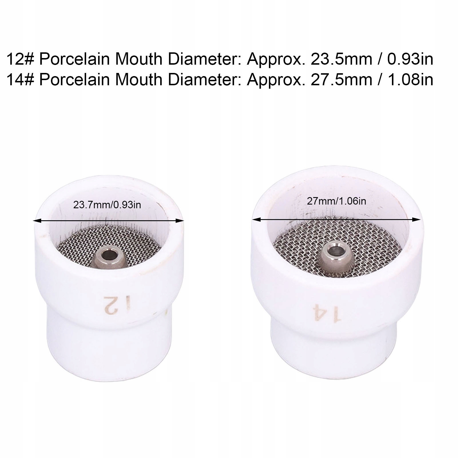 2. Практичне застосування: з порцеляновим наконечником діаметром 23,5 мм 12# та наконечником порцеляни з діаметром 27,5 мм 14#, підходить до власника зварювання серії WP-9/17/18/20/26/26.