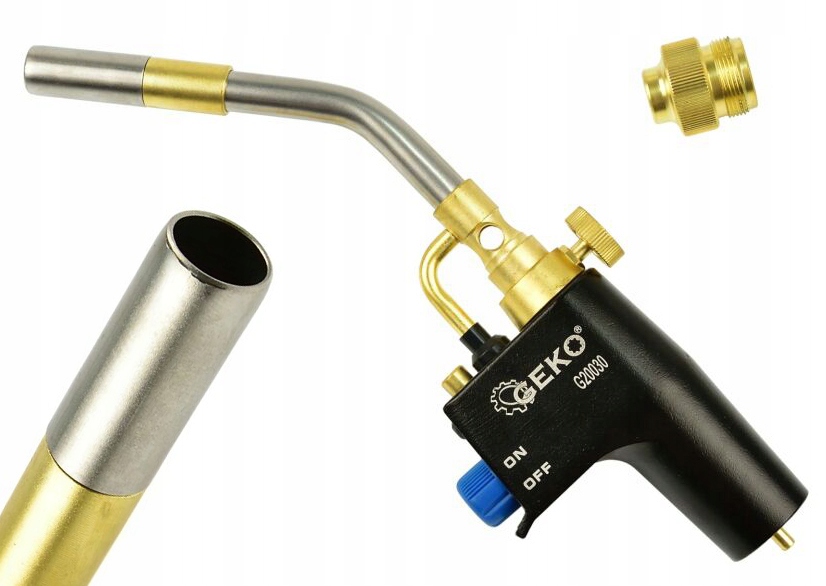 Професійний газовий пальник, що працює на пропановому газі або суміші MAPP. Виготовлений з матеріалів найвищої якості латунний корпус пальника дозволяє досягти максимальної температури 2800°C і потужності 2,0 кВт. Середнє споживання газу бл. 142 г/год, а тиск газу 2,59 МПа. Завдяки оснащенню пальника турбофорсунками, які генерують завихрене полум’я, потік газу збільшується, що, у свою чергу, призводить до підвищення ефективності та швидшого нагрівання труб.