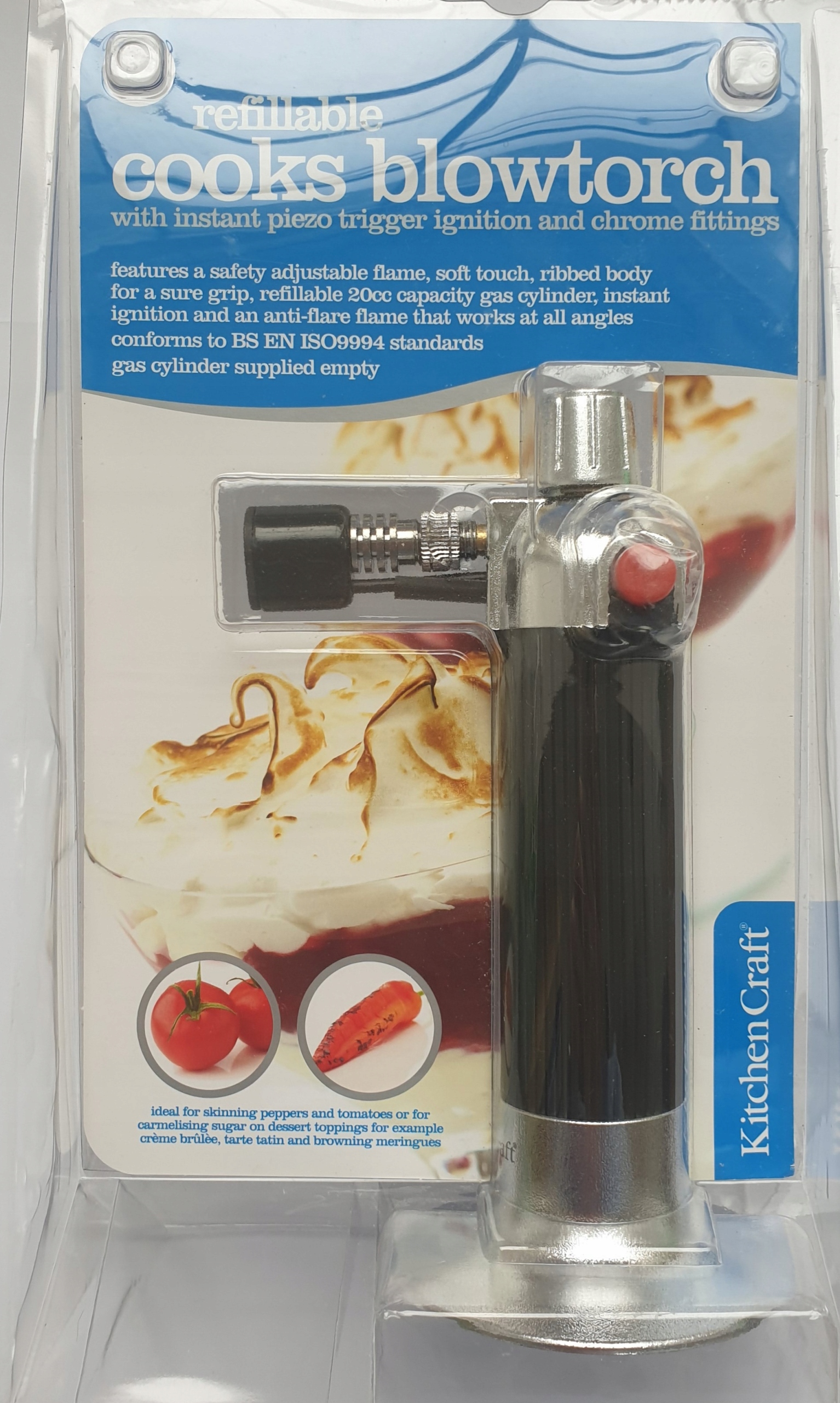 Кухонний газовий пальник має багато застосувань - ви можете використовувати цей недорогий кухонний гаджет для підсмажування крем-брюле, шкірки помідорів, обсмажування стейків та багато іншого. Кухонна конфорка перезаправляється. KitchenCraft розроблений як надійний, безпечний і простий у використанні кухонний помічник. Це чудовий спосіб покращити домашню кухню або чудовий подарунок для затятого кухаря. Виріб має регульоване полум'я, тож ви можете насолоджуватися повним контролем. Щоб справлятися з різними кулінарними завданнями, конфорка розроблена з урахуванням максимальної безпеки. Має регульоване полум'я, миттєве п'єзоелектричне розпалювання та приємне на дотик покриття, що полегшує утримання виробу. Хромована фурнітура надає йому шикарний вигляд, і його можна заправляти, тож ви можете знову й знову очищати помідори та перець або підсмажувати меренги. При повному балоні ця паяльна лампа може працювати до години. Таким чином, окрім того, що він чудово підходить для приготування основних страв і завершення десертів, він також чудово підходить для виготовлення моделей, ремонту та навіть невеликих паяльних робіт. Обсмажування або запікання. Герметизація або пайка. Ви можете виконати завдання безпечно та комфортно. Ця паяльна лампа має ребристий, м’який на дотик корпус, що дозволяє легко підтримувати міцне та надійне утримання. Не варто панікувати, якщо в пальнику закінчився газ. Наповнювати настільки просто, що ви можете повернутися до карамелізації крем-брюле. Він сумісний із легко доступними фірмовими бутановими газами для запальничок. Коли він не використовується, просто переверніть його догори дном, щоб отримати доступ до заливного клапана. Обладнання відповідає стандарту BS EN ISO 22702:2003.