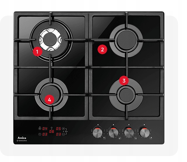 Встановіть час приготування, і коли він закінчиться, варильна поверхня автоматично вимкне конфорку, видаючи характерний звук. Ви також можете використовувати таймер як таймер зворотного відліку. З газовою варильною поверхнею Amica яйце, зварене некруто, ніколи більше не стане яйцем, звареним круто. Отримайте повний контроль над своїм часом!