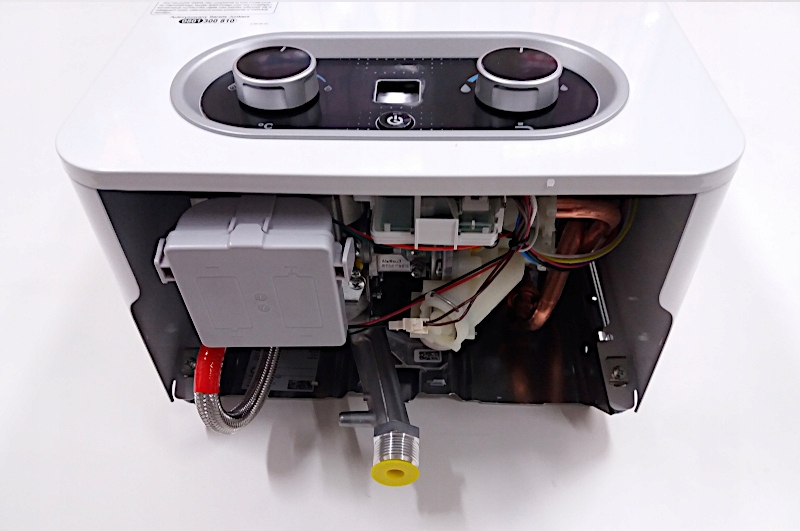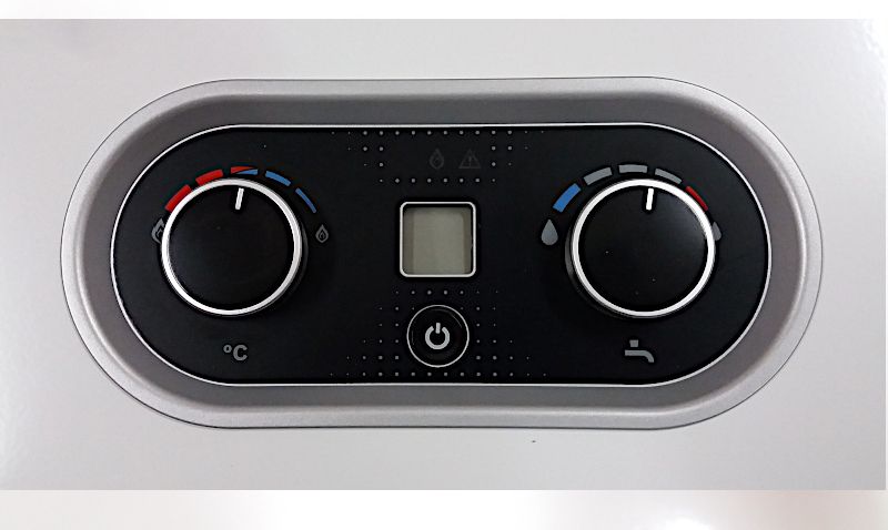 Потужність пальника регулюється ручкою зліва, а витрата – ручкою справа. Після початкового налаштування пристрій самостійно регулює потужність пальника, щоб отримати постійну температуру води незалежно від зміни витрати води.