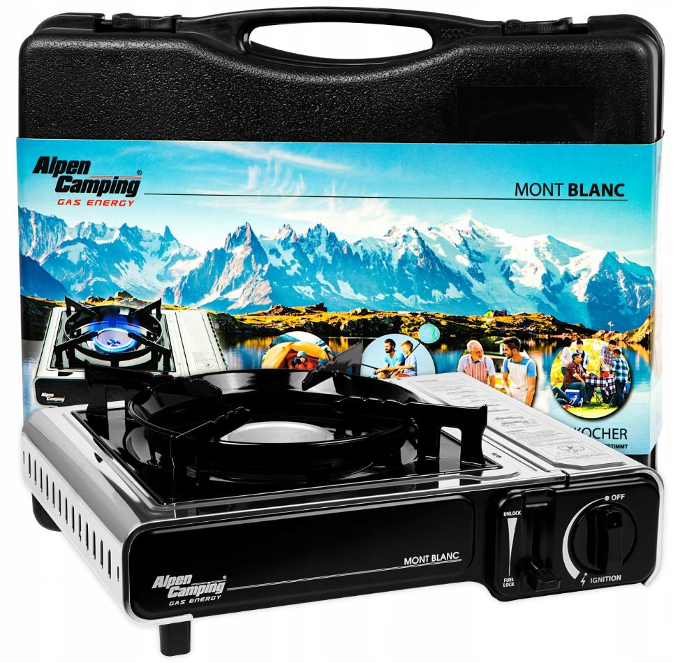 - Одноконфорочна газова плита "Mont Blanc" з нержавіючої сталі дозволяє швидко та легко готувати страви та кип'ятити воду для кави чи чаю