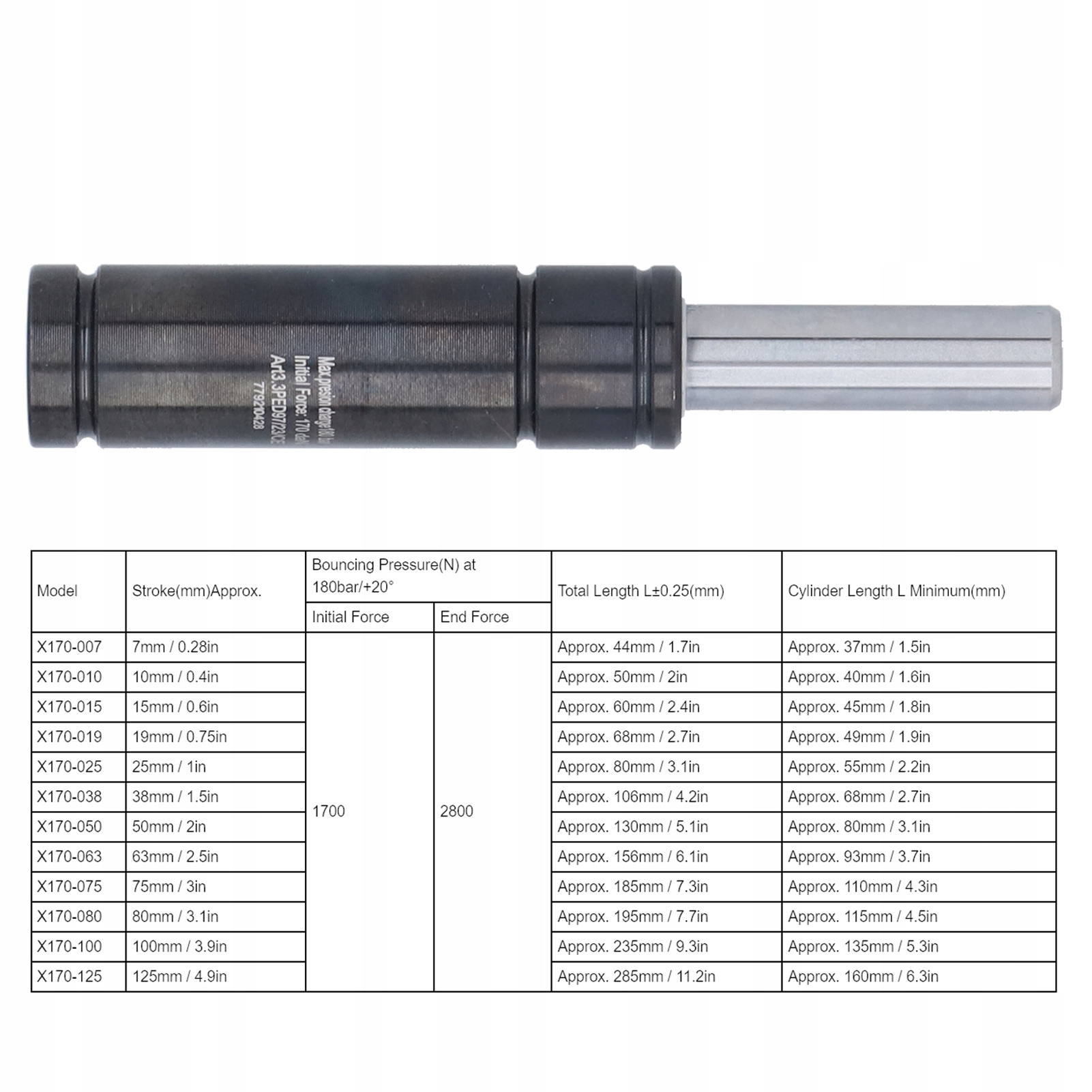 Діаметр циліндр: прибл. 19 мм / 0,7 дюйма Діаметр поршня: приблизно 11 мм / 0,4 дюйма
