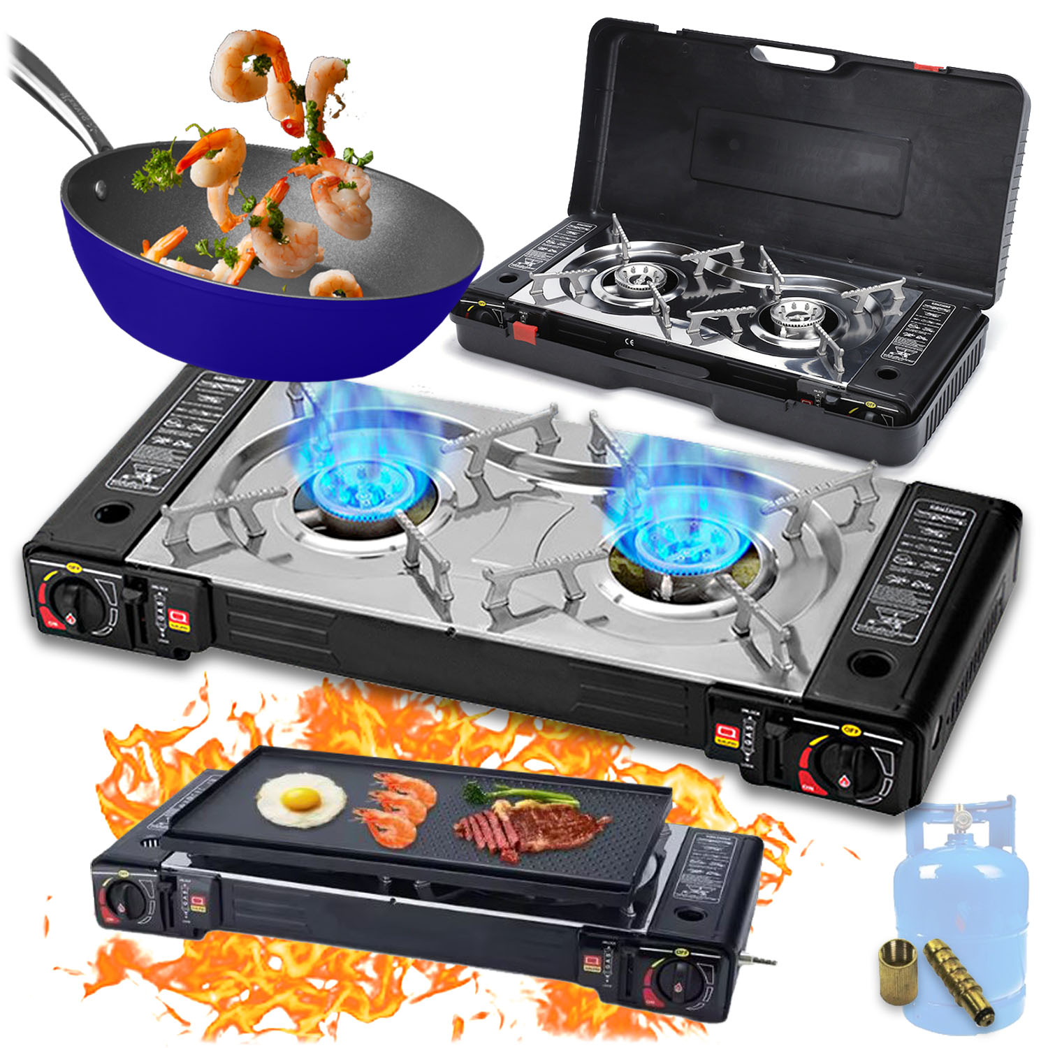 ГАЗОВА ТУРИСТИЧНА ПЛИТА ПОРТАТИВНА ДВОПАЛЬНИКОВА КАРТУШІ БАЛОНИ + КЕЙС