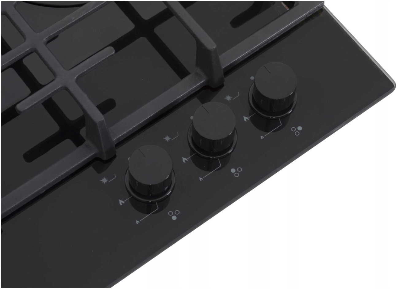 3-конфорочна газова плита, ширина 44 см. Виготовлений із загартованого скла. Відрізняється чорним покриттям.