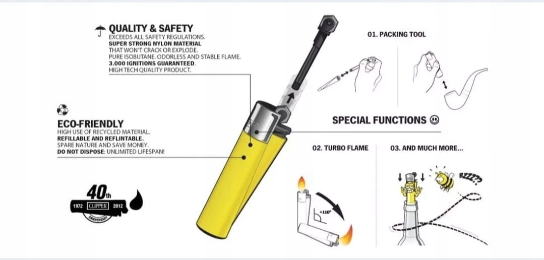 Найпопулярніші та улюблені запальнички в усьому світі. Цей іспанський бренд радує користувачів своїм дизайном і функціональністю вже понад п’ятдесят років і представлений у понад 130 країнах світу. У вересні 2015 року Бренд Clipper з'явився в Польщі.