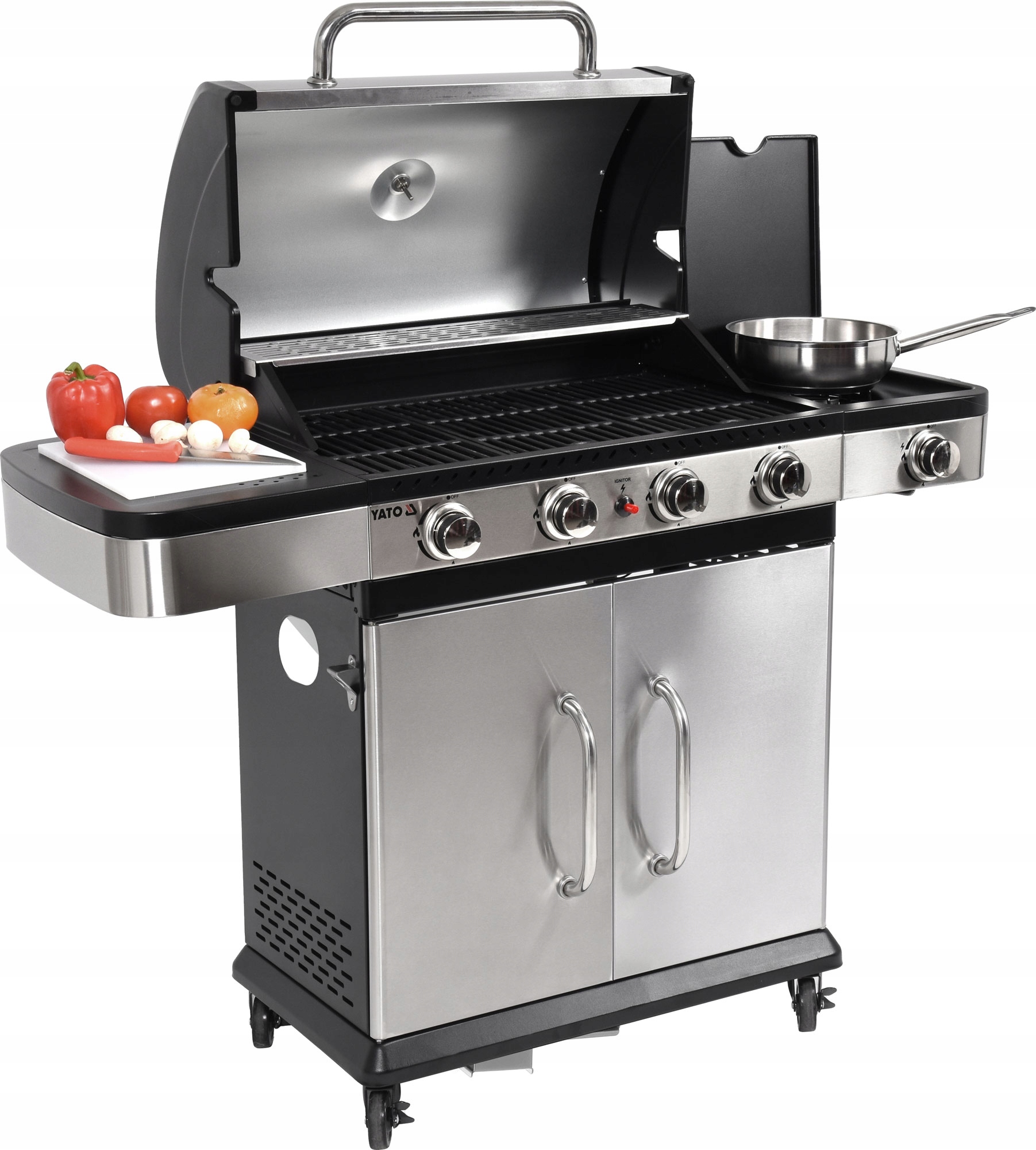 ГАЗОВИЙ ГРИЛЬ 14,2 КВТ ЧАВУННА РЕШІТКА 4+1 БОКОВА КОНФОРКА YATO