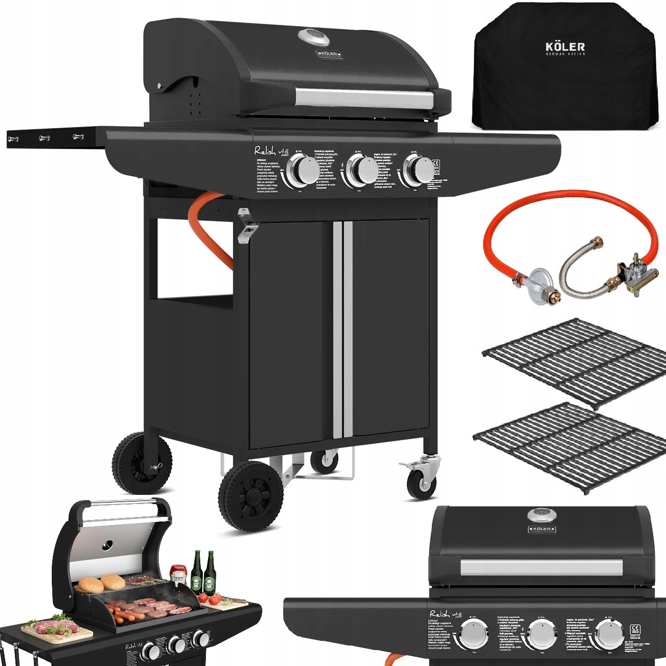 Набір включає безкоштовний набір вартістю 200 злотих - редуктор, шланг і кришку гриля.