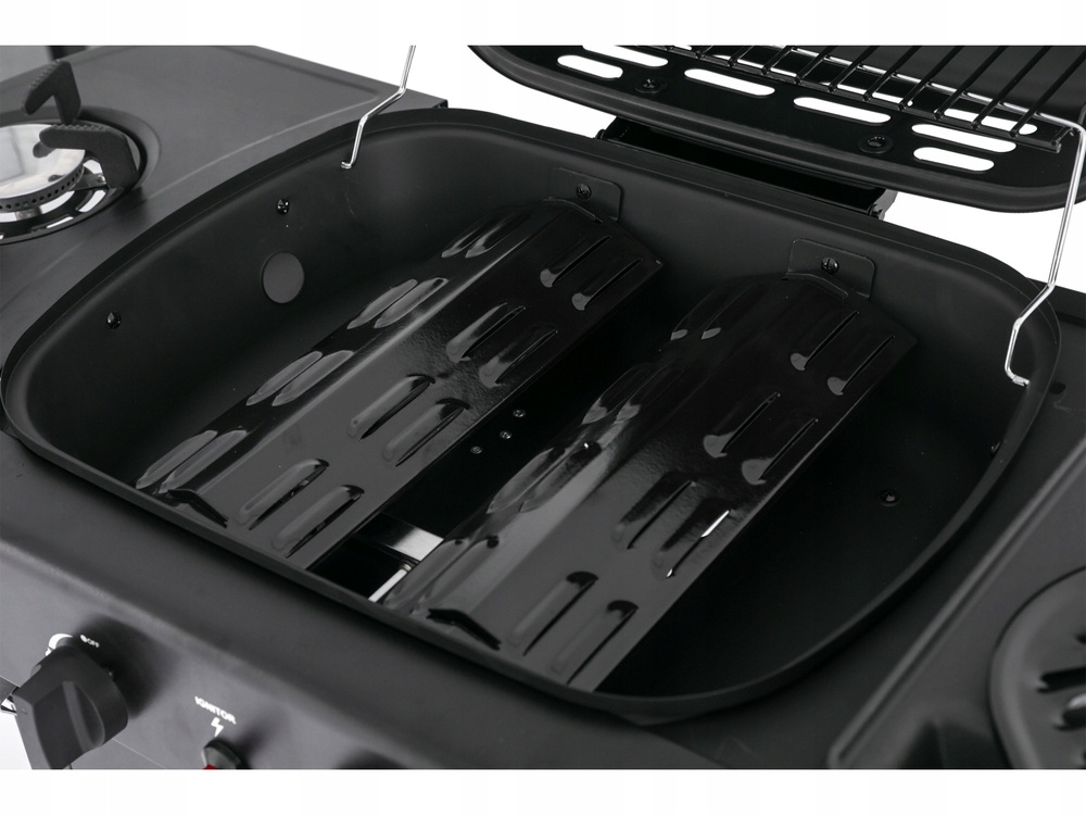 Оснащений чотирма ефективними пальниками забезпечує швидке та рівномірне нагрівання. Емальована решітка забезпечує достатньо місця для смаження різноманітних страв, бокова конфорка дозволяє готувати їжу в каструлі або сковороді, а додаткова нагрівальна решітка > дозволяє зберігати теплі готові страви.