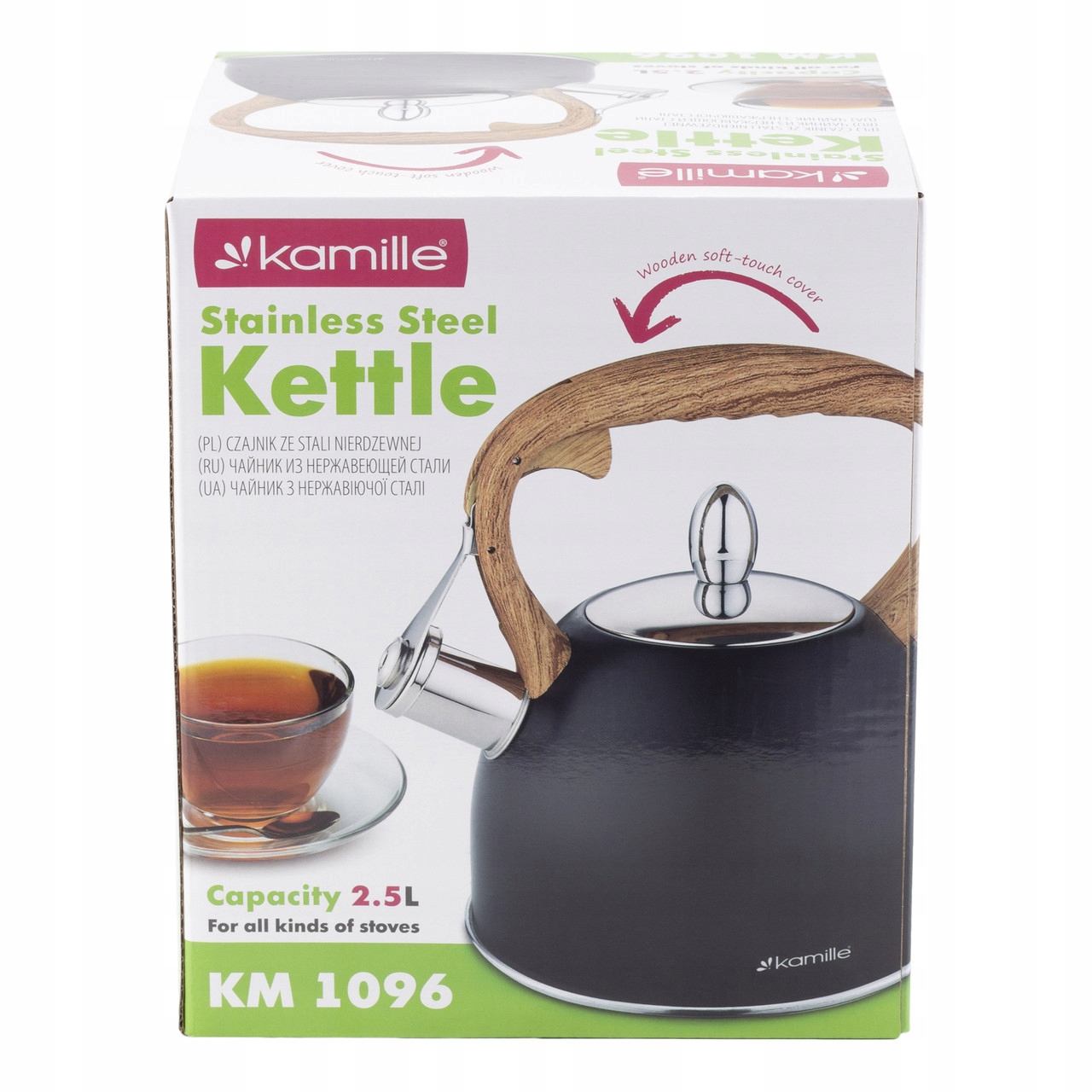 Елегантний і функціональний чайник Kamille з останньої лінії дизайну, виготовлений з матеріалів найвищої якості. Виготовлений з нержавіючої сталі зі стаціонарним вбудованим свистком.