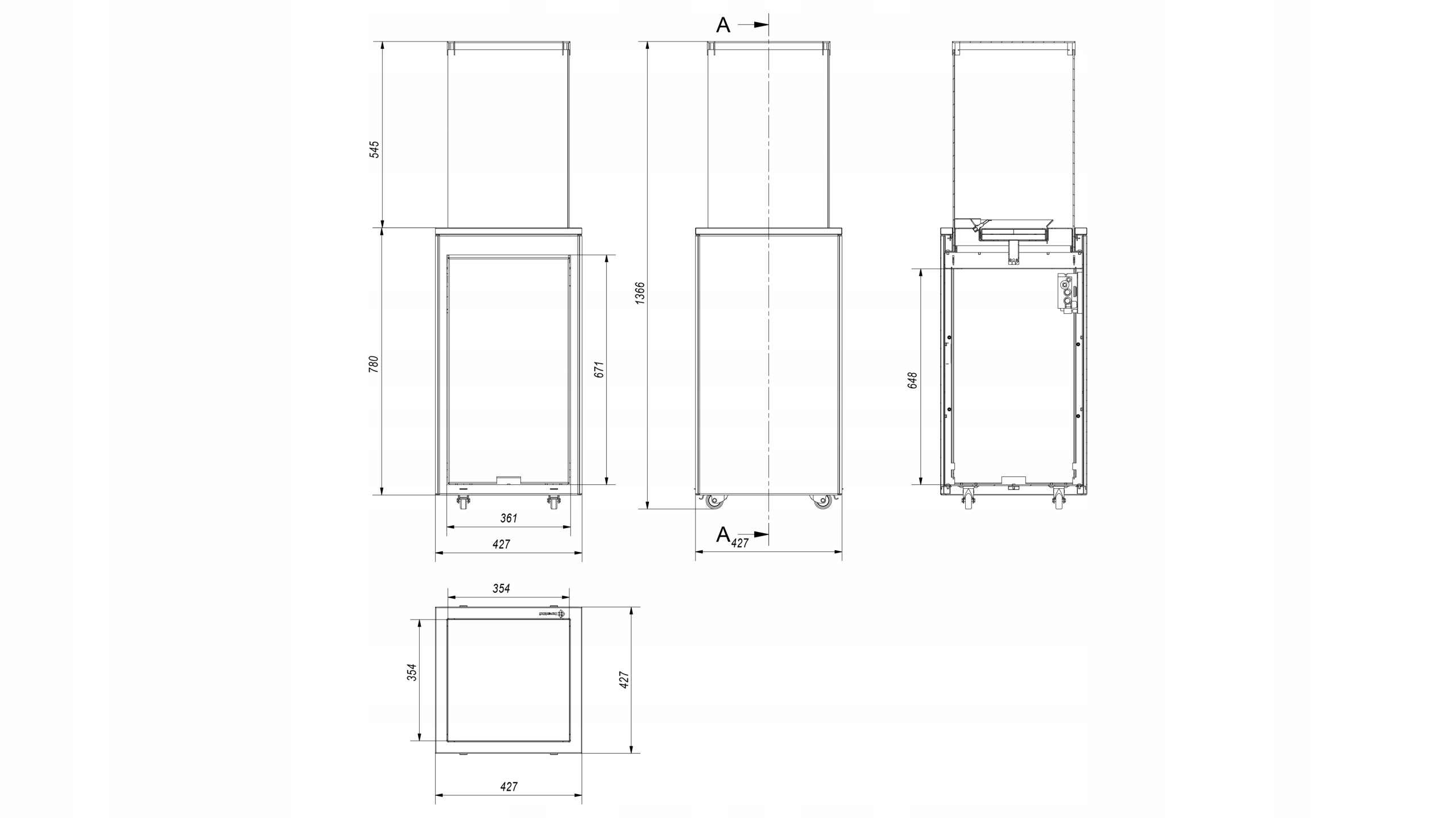 Розміри: ширина версії MINI: 42,7 см, глибина: 42,7 см, висота: 136,60 cm