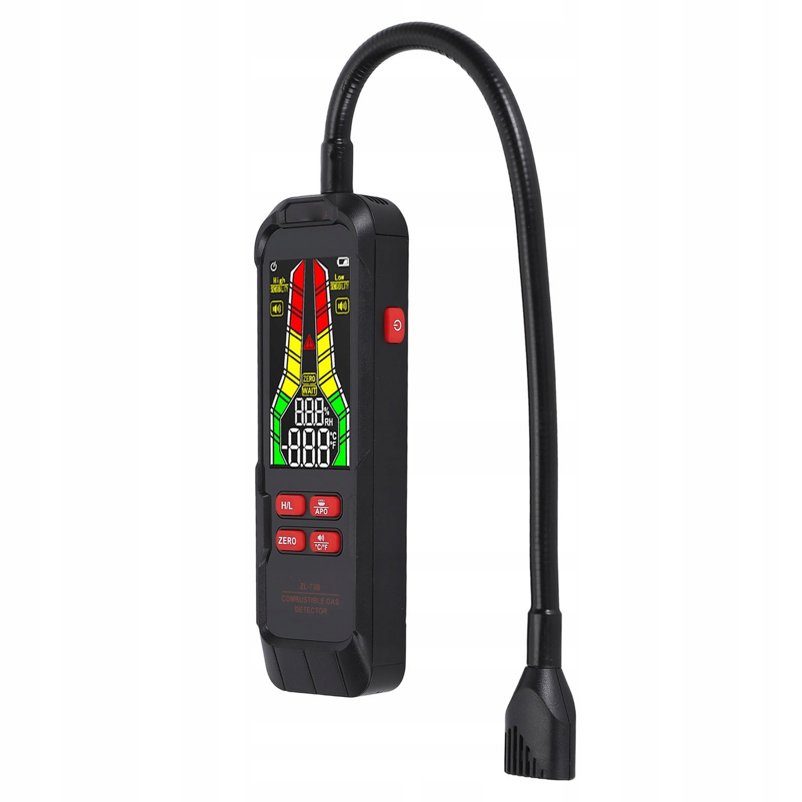 2. Гнучка гусяча шия з довжиною 11,8 дюйма: Цей детектор витоку газу оснащений гнучкою гусячою шиною з довжиною 11,8 дюймів, що дозволяє легко та зручно отримати доступ до твердих -доторських місць.