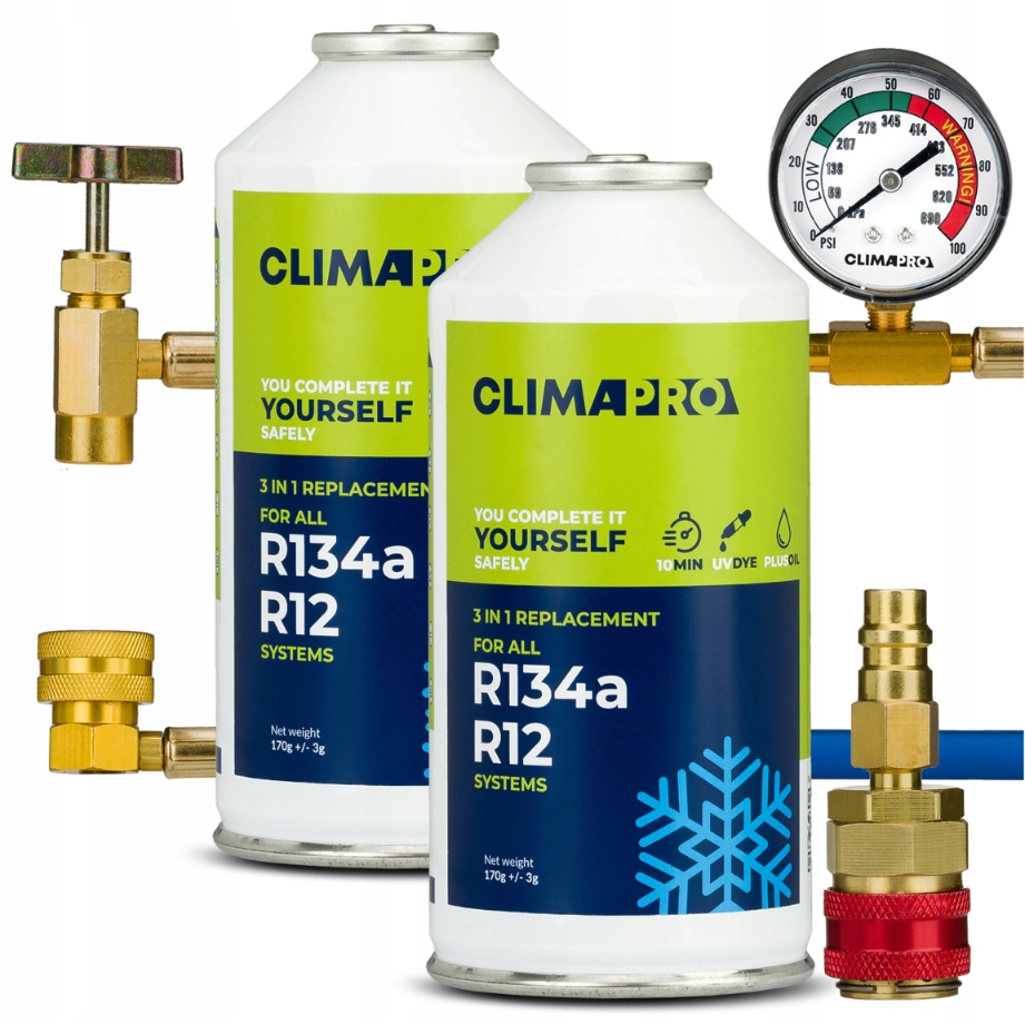 Клімапурапро -холодоагент сумісний із заводськими системами r134a (транспортні засоби з 1994 - 2016) та r12 (транспортні засоби до 1994 року).