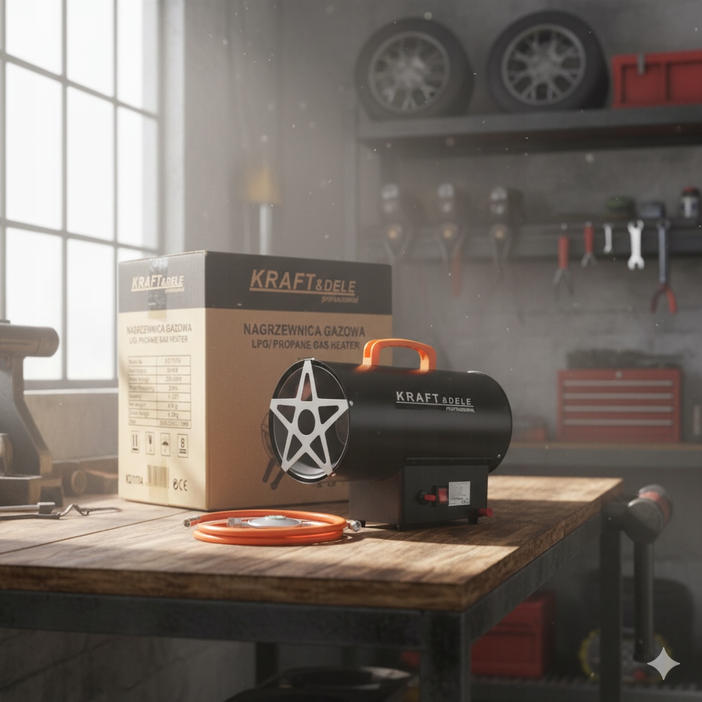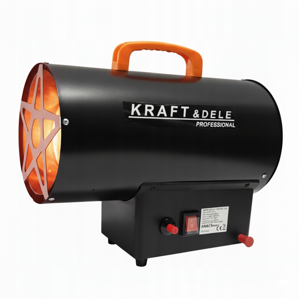 Пропан-бутановий газовий обігрівач KRAFT&DELE виробляє чисте та тепле повітря. Процес горіння відбувається у відкритій камері згоряння, повітря, яке всмоктується вентилятором, нагрівається, а потім видувається з нагрівача. Для цього не потрібен димохід, необхідно забезпечити лише подачу повітря для належного горіння.