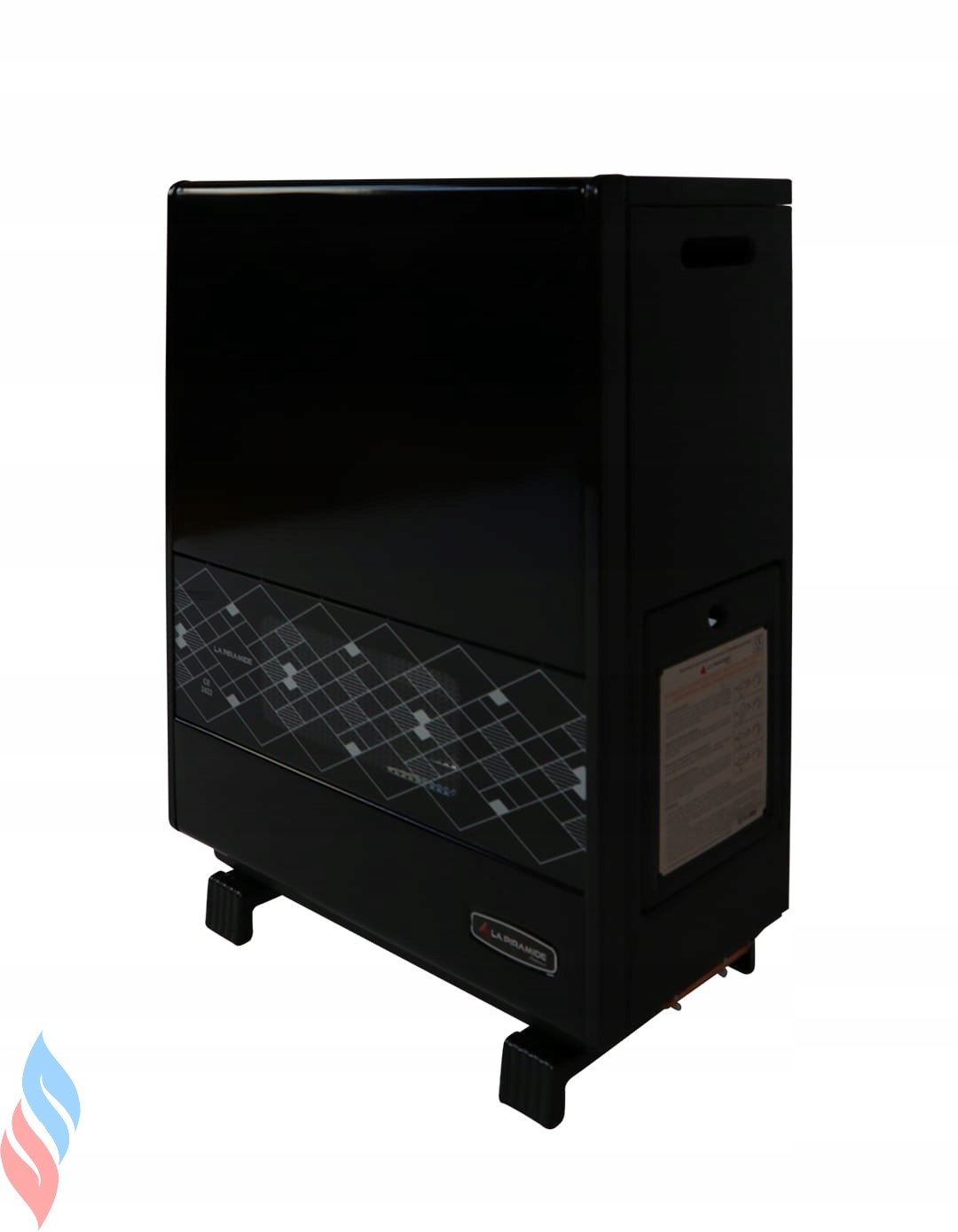 Газова плита працює на пропані або пропан-бутані. Пальник модульований. Має сталевий емальований теплообмінник, який є камерою згоряння. Газ горить у відкритій камері згоряння і забирає повітря зсередини. Відпрацьовані гази виводяться через димохід. Обігрівач має термостат, на якому користувач встановлює бажану температуру. Після досягнення заданої температури піч автоматично вимикається і світиться лише пульт дистанційного керування. Приміщення, в якому знаходиться калорифер, повинно мати приплив свіжого повітря для спалювання газу в обсязі 4 м3 на годину. ВИХЛОП МОЖНА КУПИТИ ОКРЕМО.