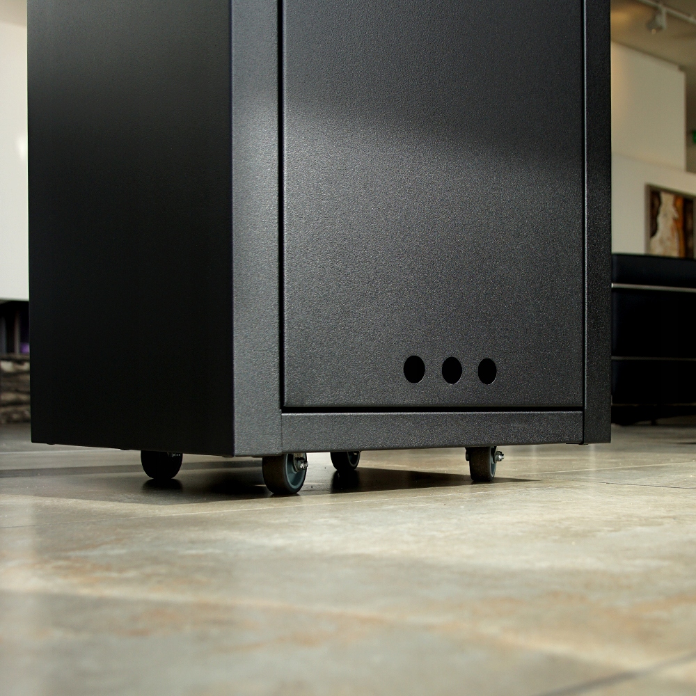 Колеса з шарикопідшипниками на 360° забезпечують повну мобільність пристрою. Ви можете легко розмістити обігрівач у вибраному місці та заблокувати коліщатка, щоб захистити прилад від неконтрольованого переміщення. Кожне колесо можна заблокувати окремо.