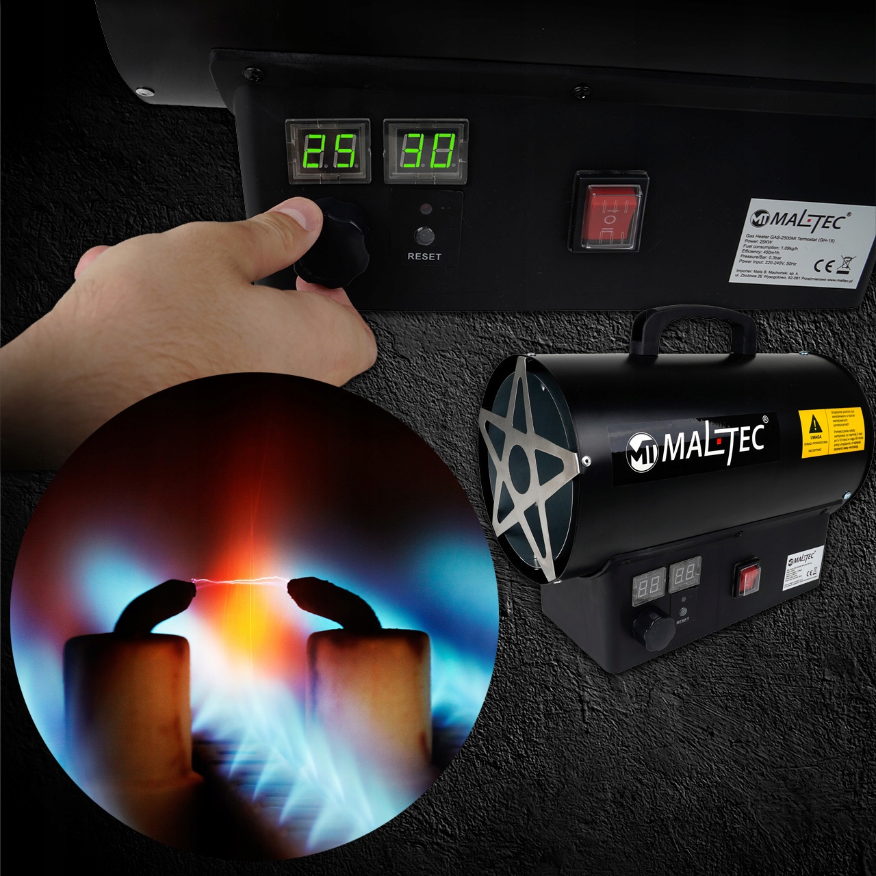 Обігрівач Maltec має вбудований термостат і регулювання температури на цифровому дисплеї. Відтепер ви можете легко встановити бажану температуру навколишнього середовища.