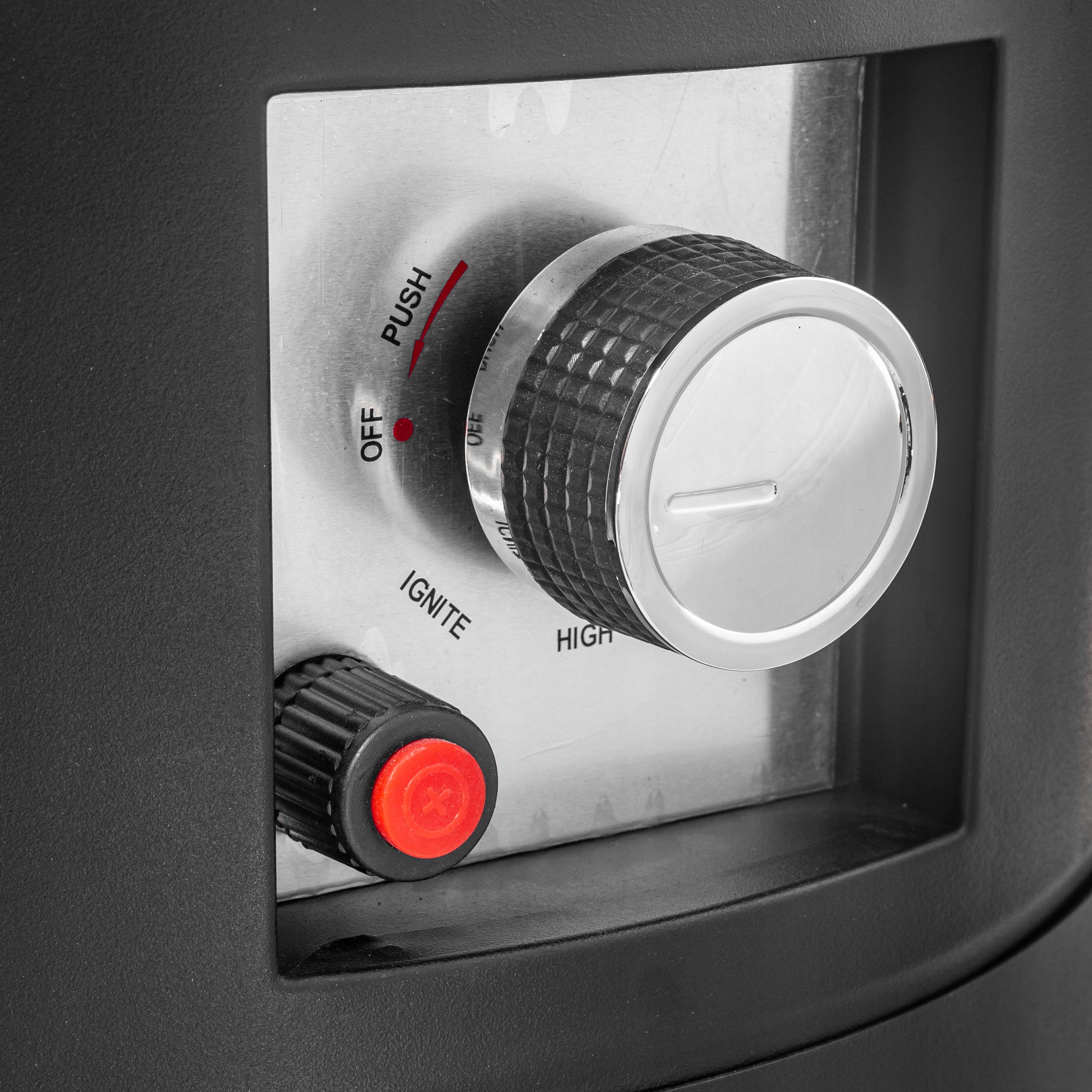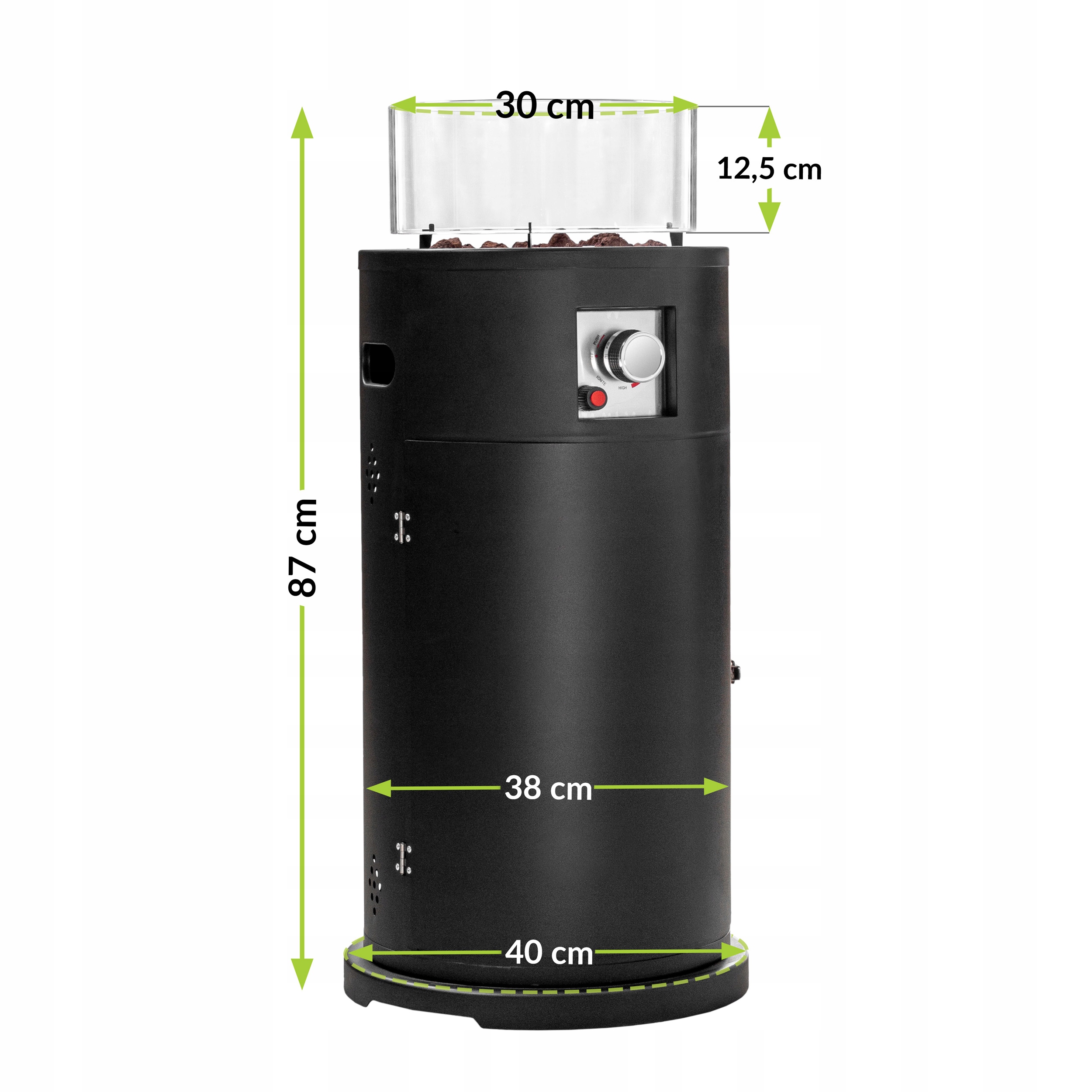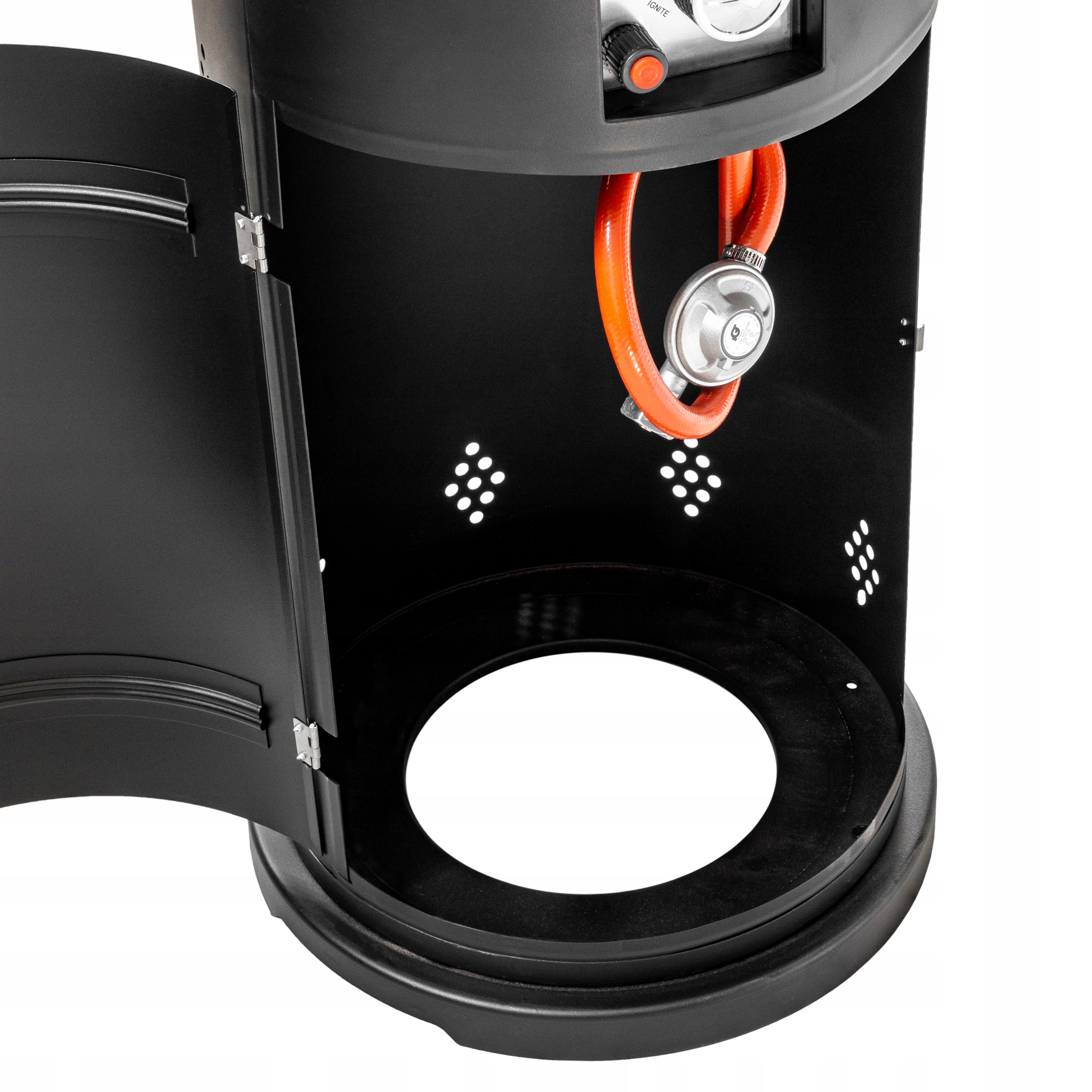 Ефективний газовий обігрівач потужністю 11,7 кВт працює на паливі пропан-бутан. Висота 84 см істотно впливає на ефективність і рівномірний тепловиділення. Газовий обігрівач має місце для зберігання балона в нижній частині конструкції. Це відмінний захист від перекидання циліндра. Відсік для зберігання посилено кожухом, що впливає на естетичний вигляд парасольки-грілки.