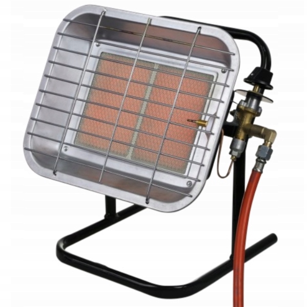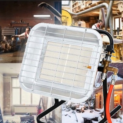 Газовий обігрівач оснащений перфорованою керамічною панеллю. Радіація, що сприймається організмом як тепло, підвищує температуру. Палаючий газ виходить у вигляді полум'я через сотні отворів. Він працює за рахунок випромінювання та конвекції. Радіаційні обігрівачі спричиняють розповсюдження тепла в радіусі кількох метрів від пристрою. Після того, як полум’я згасне, нагріта керамічна плитка протягом деякого часу віддає тепло.