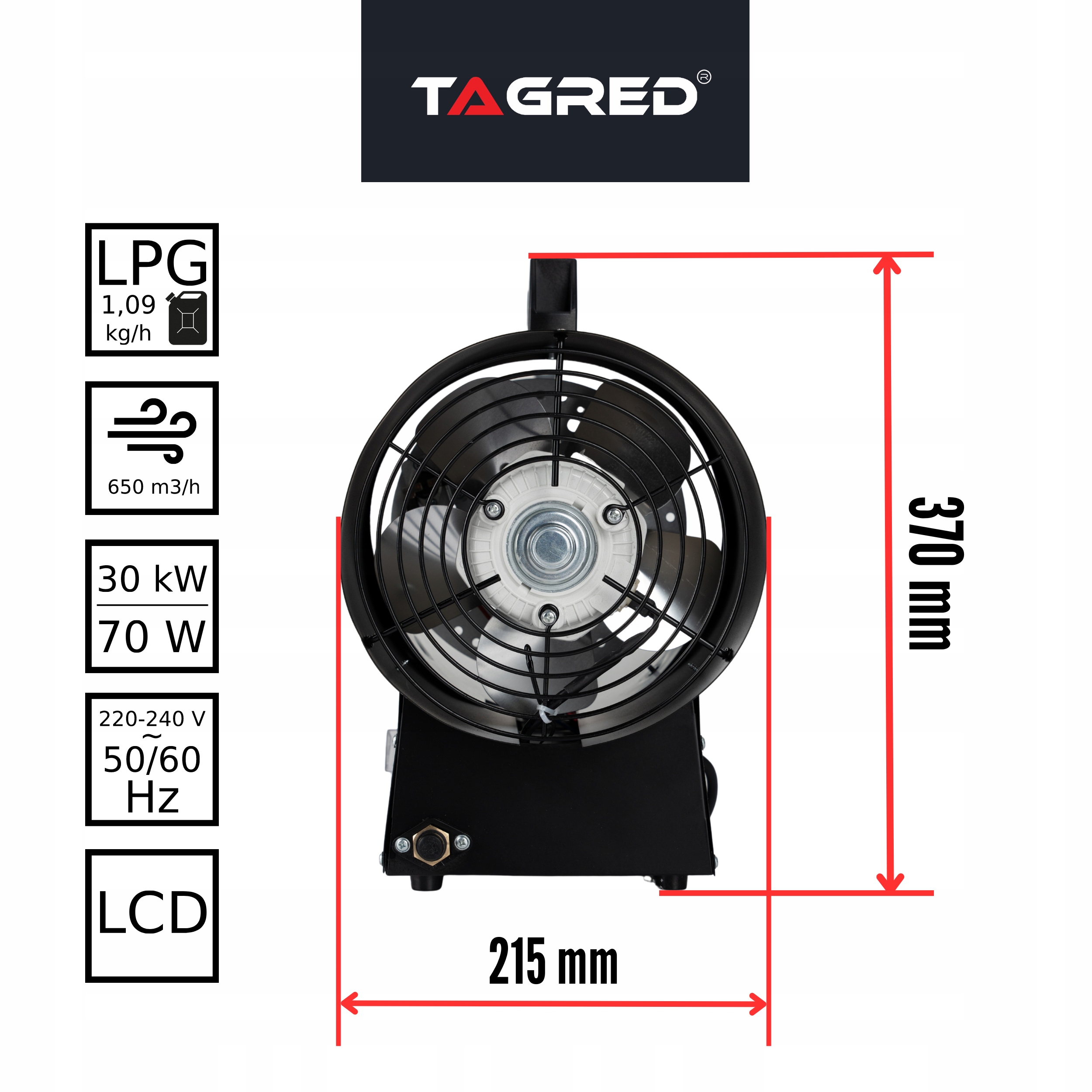 Газовий обігрівач TAGRED - портативний прилад, призначений для обігріву складських, виробничих і підсобних приміщень. Обігрівач працює на газі пропан-бутан. Пристрій має численні засоби захисту, включаючи захист від перегріву та витоку газу.