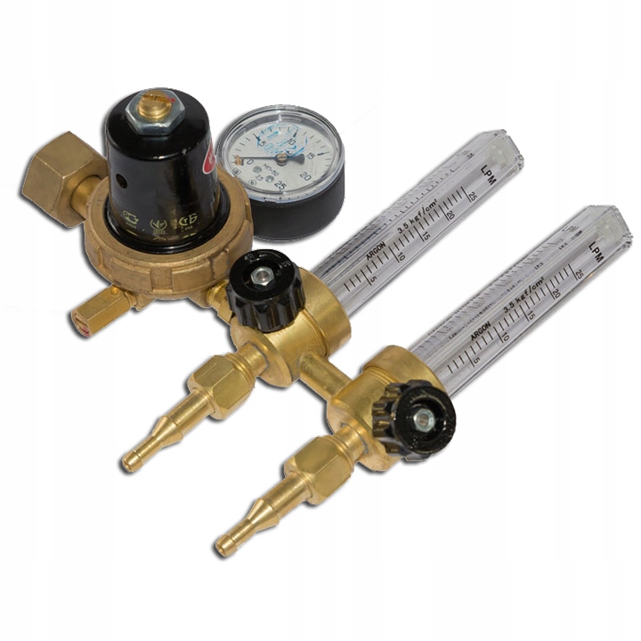 ▶ Універсальний редуктор потоку з двома ротаметрами, призначений для зниження тиску аргону або вуглекислого газу, що виходить з циліндра, і автоматично підтримує встановлену постійну витрату під час живлення електрозварювальний апарат або інше обладнання.