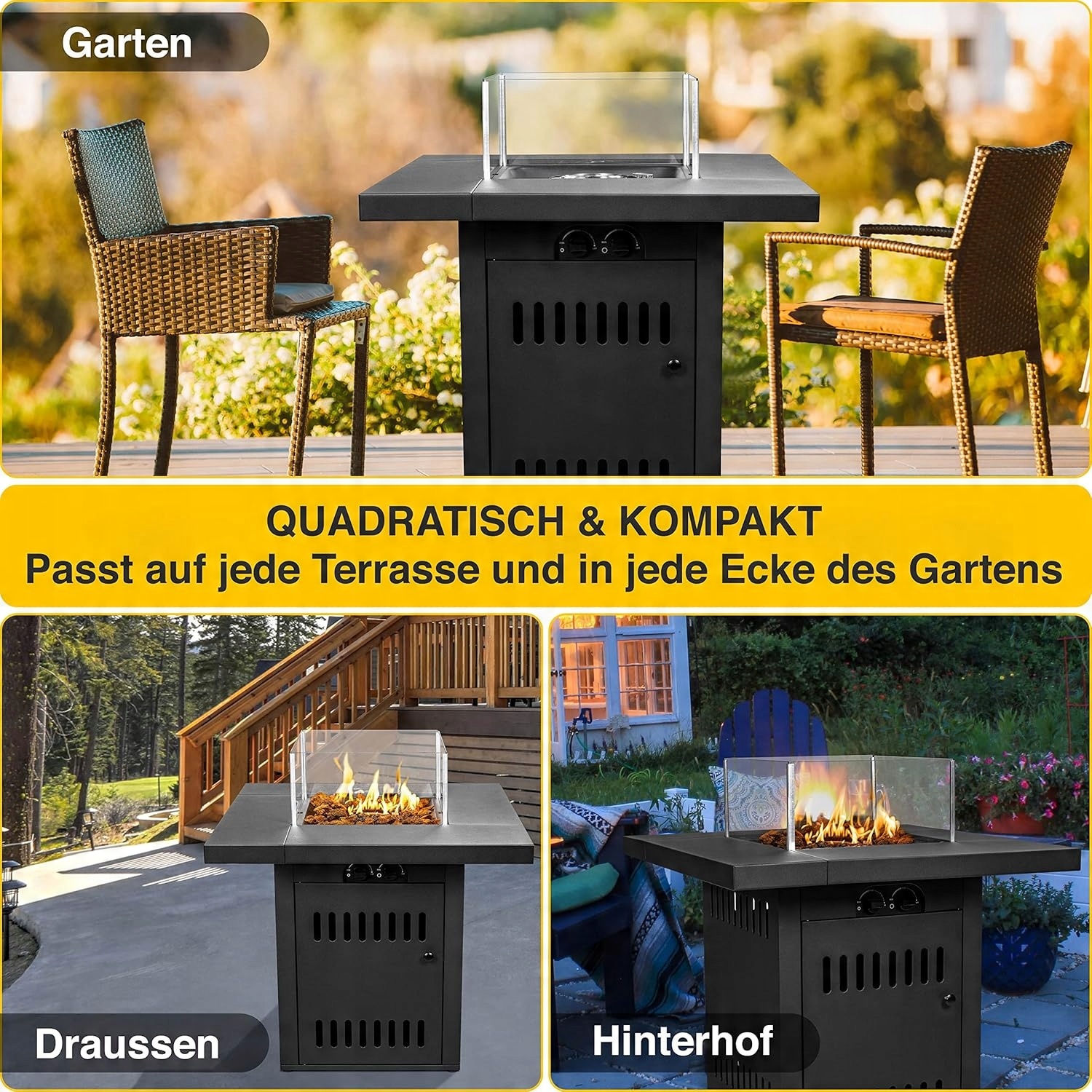 З камінним столом Meateor Ambiente Cube ви можете перетворити свій сад на невелику приватну вітальню прохолодними літніми вечорами.