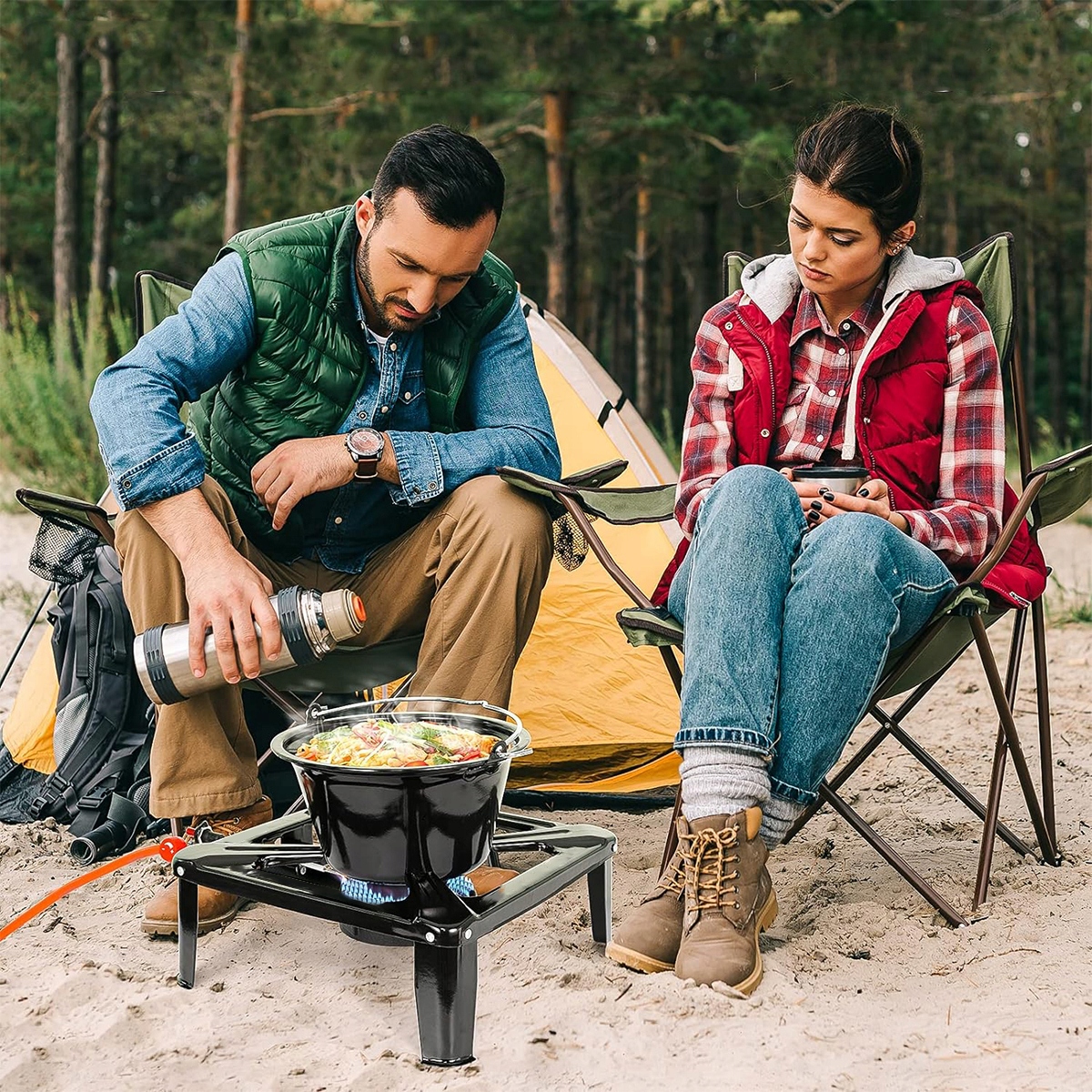 Ви любите кемпінг, але холодна їжа не підходить для вас? Наша портативна газова плита -легка і компактна, завдяки якій вона ідеально підходить для пригод на свіжому повітрі. Завдяки регульованій ручці регулювання полум'я ви можете легко приготувати теплі страви в пазуху природи. Не псуйте свою подорож холодною їжею - наш кемпінг розігріть вашу їжу мить око.