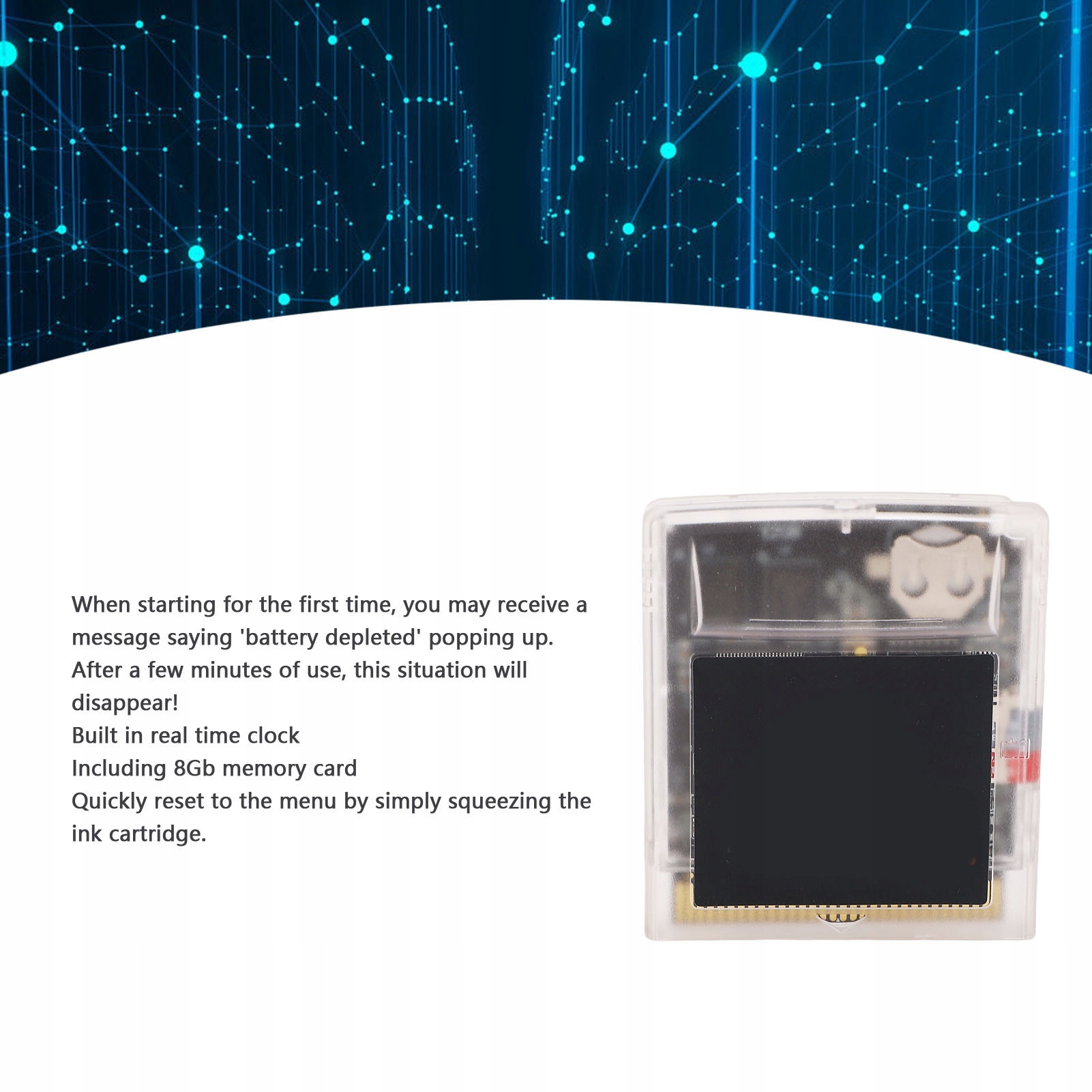 2. Вбудований годинник у режимі реального часу: ігрова карта має вбудований годинник у реальному часі, що підходить для ігор, що вимагають ковзання RTC. Це сумісно з Gameboy, для Gameboy Pocket, для Gameboy Color та для Gameboy Advance SP, навіть з модулями підсвічування!