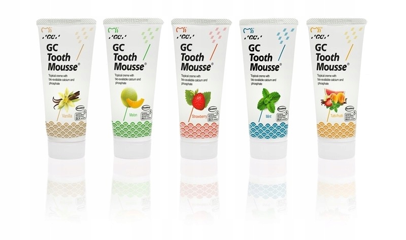 Початковий карієс, що вражає зуби, викликає їх демінералізацію, тому зуби руйнуються. менш стійка до шкідливого впливу кислот, що виробляються бактеріями – зубна паста GC TOOTH MOUSSE забезпечує іони кальцію та іони фосфату, які необхідні для належної ремінералізації емалі та усунення початкового карієсу з її поверхні. Ефективність препаратів, що містять комплекс фосфопептиду казеїну та фосфату кальцію, у боротьбі з початковим карієсом підтверджена численними дослідженнями.