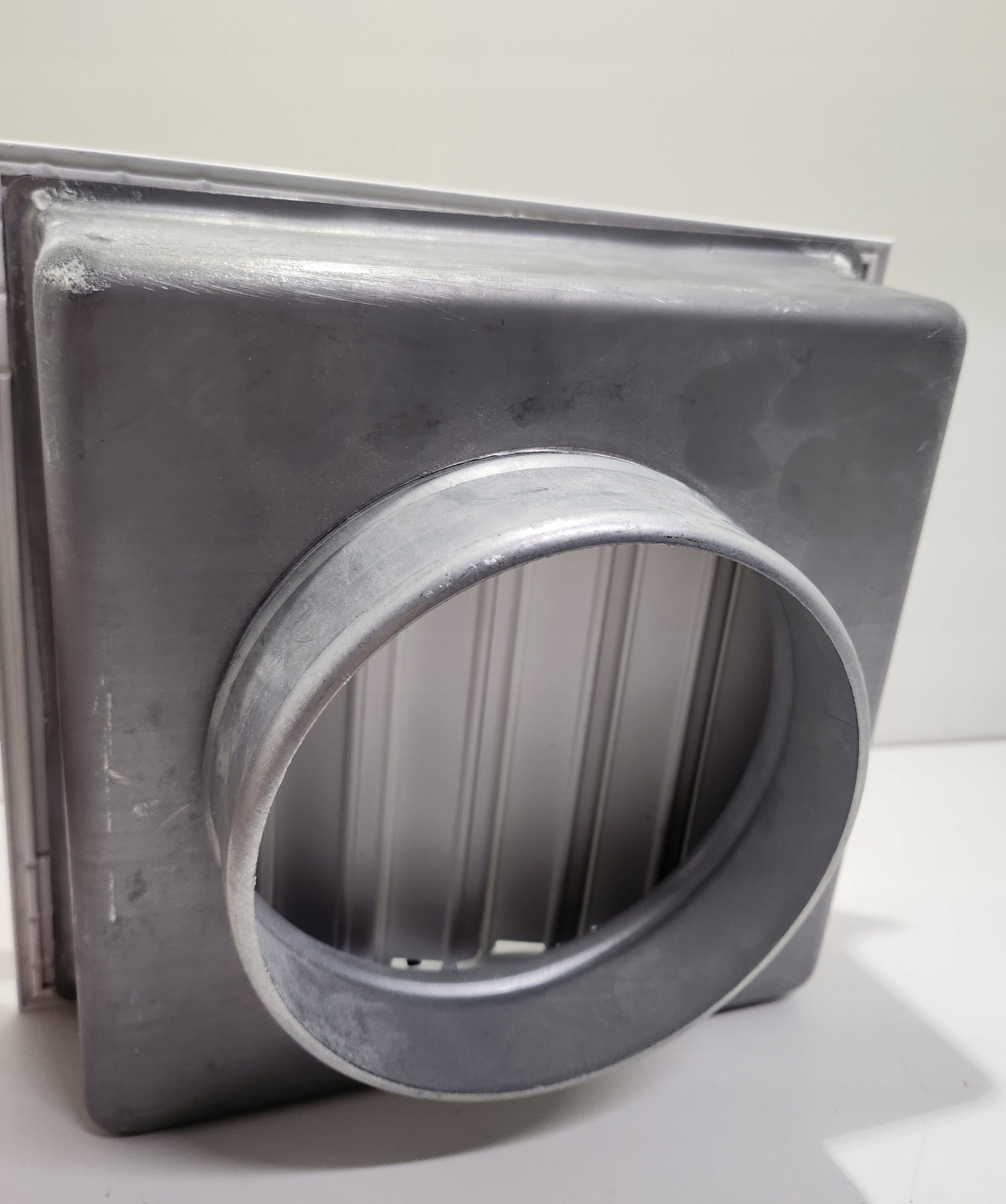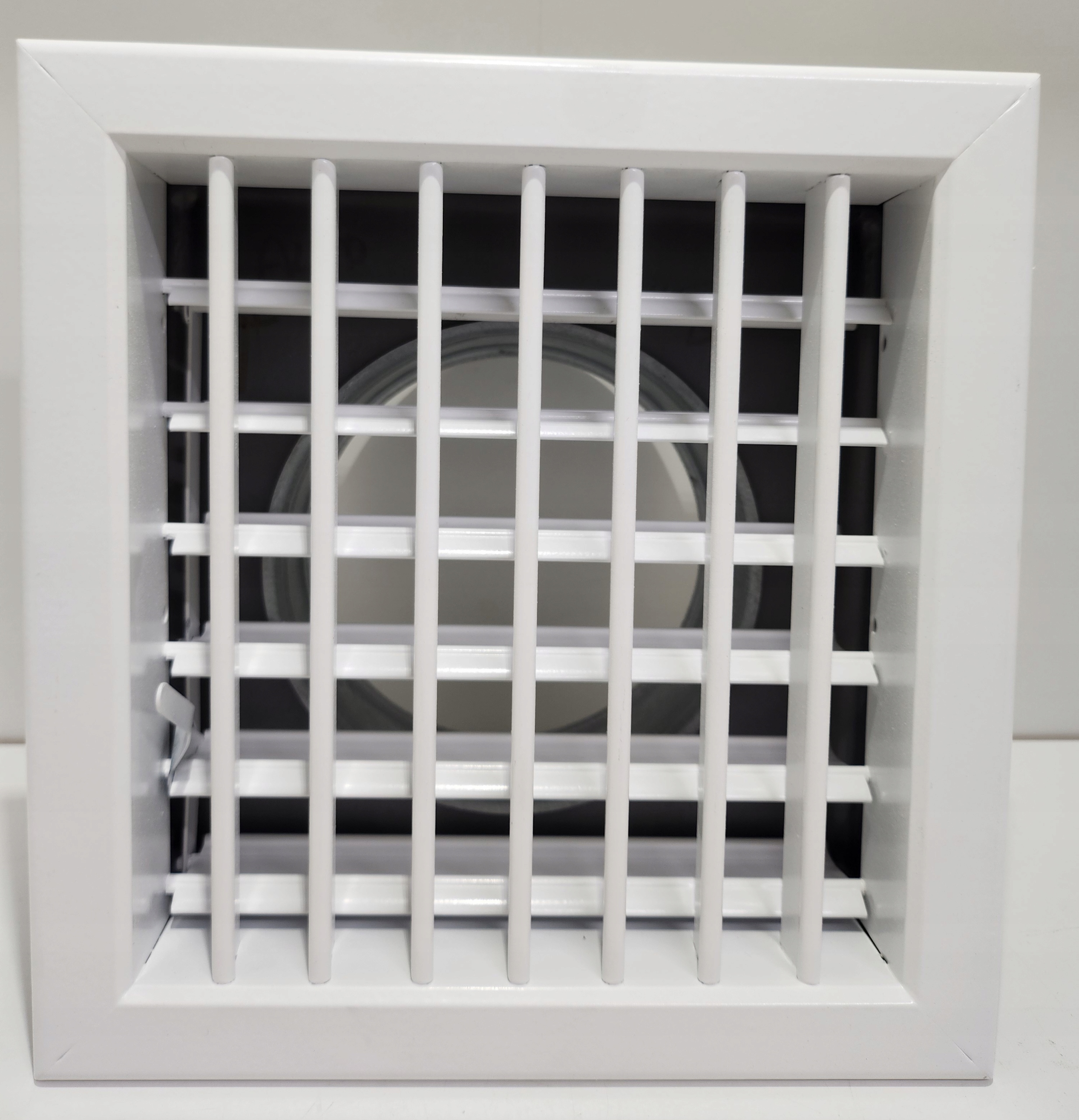 Вбудована вентиляційна решітка Зовнішні розміри 200 х 200 мм діаметром 140 мм та жалюзі, регульованими для отвору 183 х 183 мм. Ідеально підходить для камінів. Білий -розфарбований алюміній.