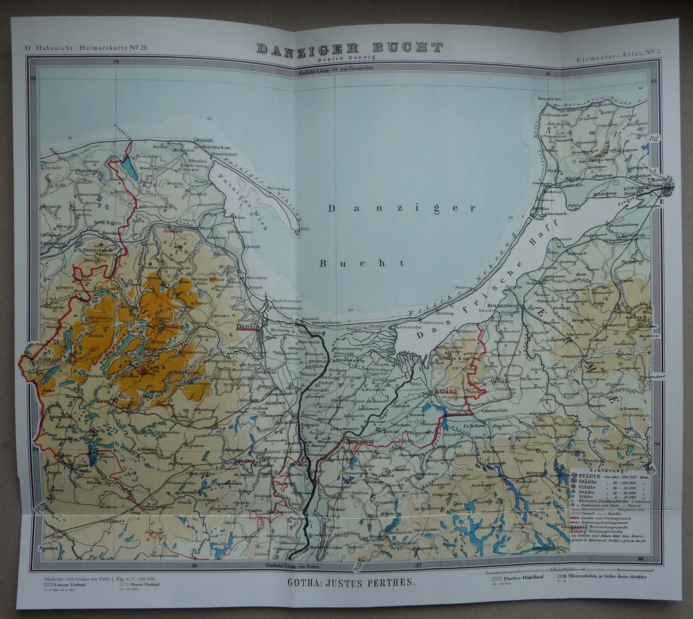 Карта Германа Габеніхта охоплює територію на південь від Гданської затоки до Квідзина та Оструди та від Лемборка на заході до лінії Крулевець, Орнета, Оструда на сході.