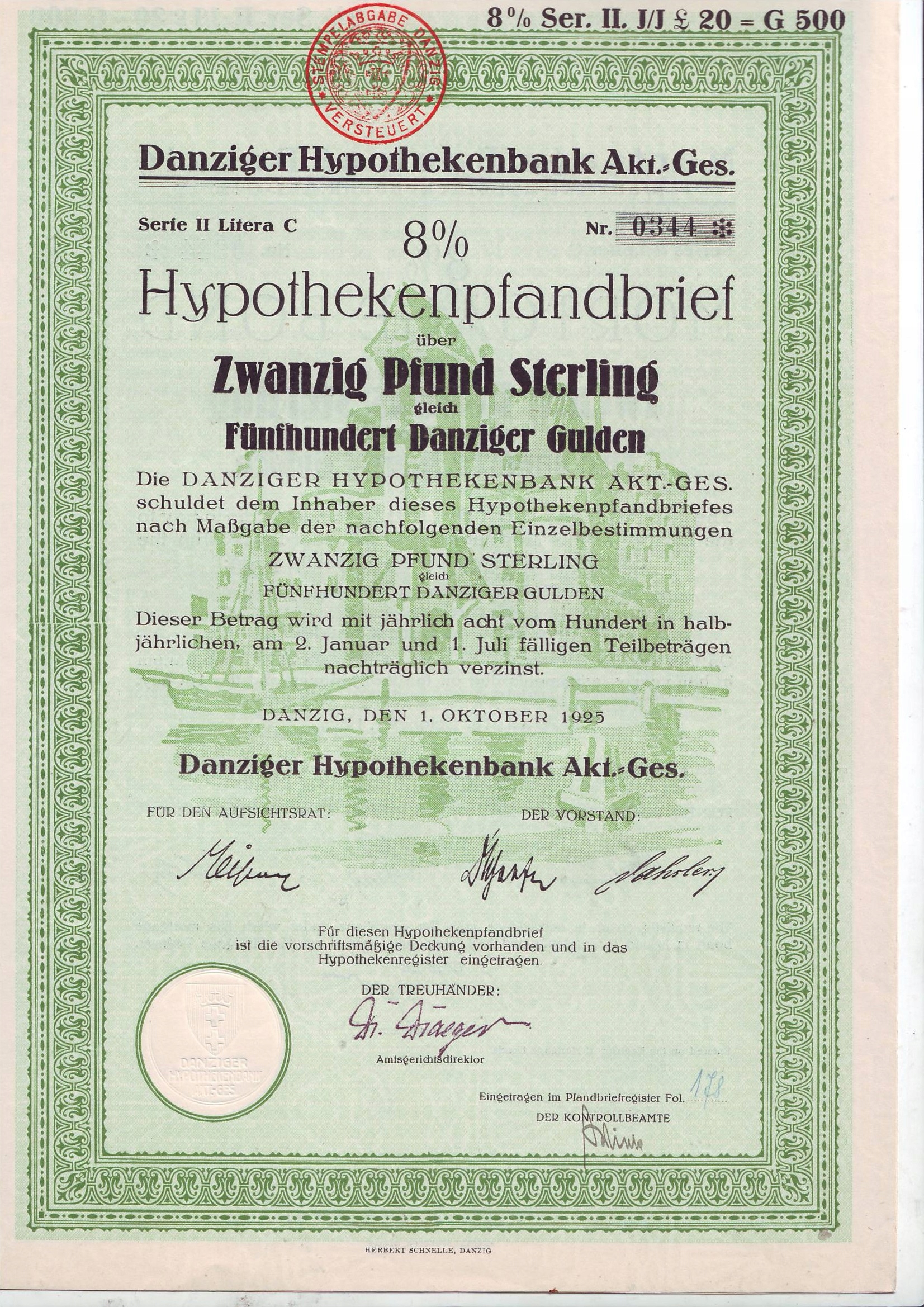 Гданський іпотечний банк, лист заст. 20 фунтів 1925
