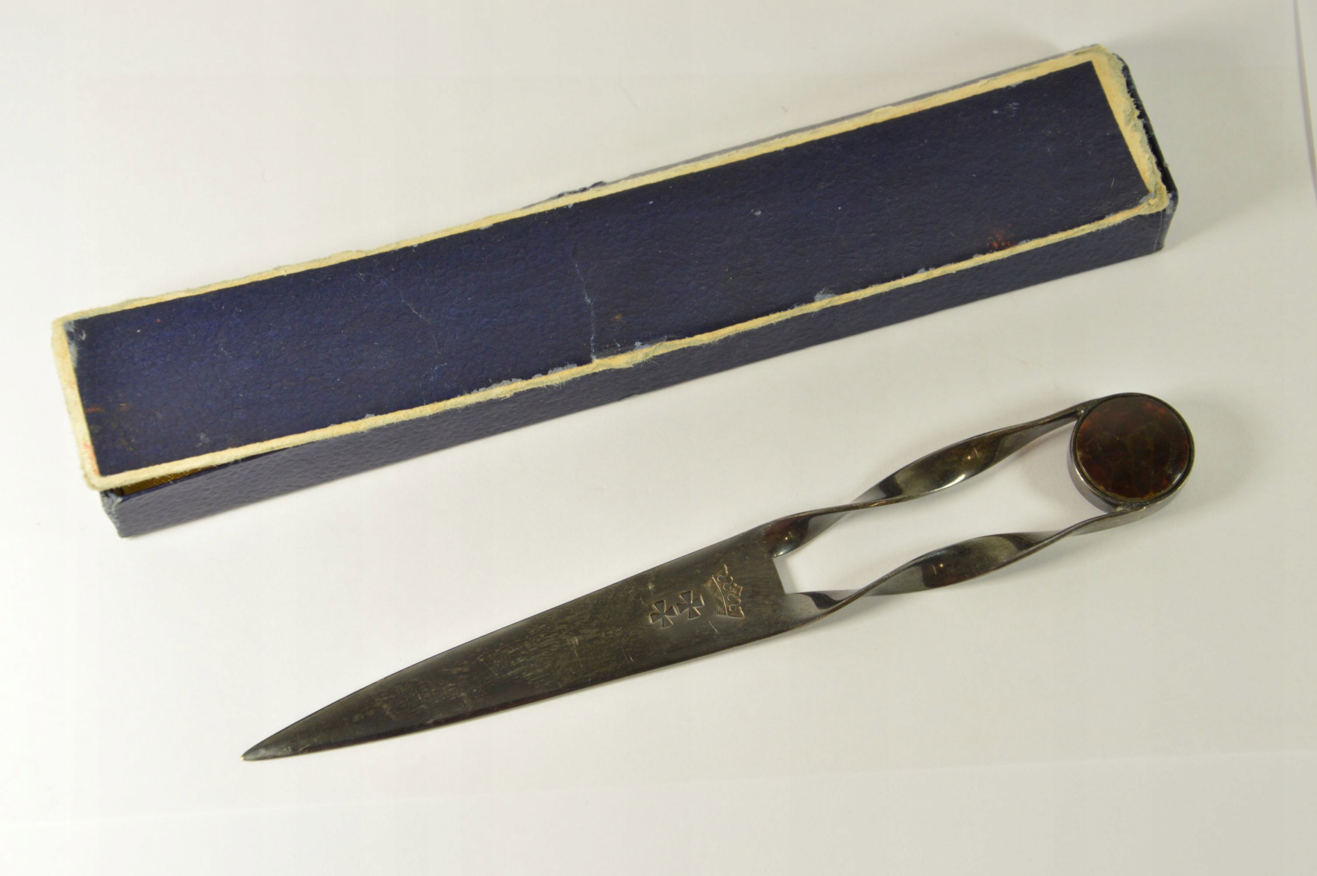 GDAŃSK PIĘKNY STARY NÓŻ DO LISTÓW Z HERBEM i BURSZTYNEM ETUI ZOBACZ!