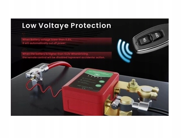 Наш перемикач оснащений автоматичним відключенням живлення. Якщо він опуститься нижче 11,8 В, він автоматично відключається від джерела живлення через 120 секунд, щоб заощадити енергію. Якщо він додатково використовувався вище 13,2 В, дистанційне управління, щоб запобігти відключенню живлення під час руху. У цьому випадку використання можна керувати лише за допомогою кнопки на комутаторі.