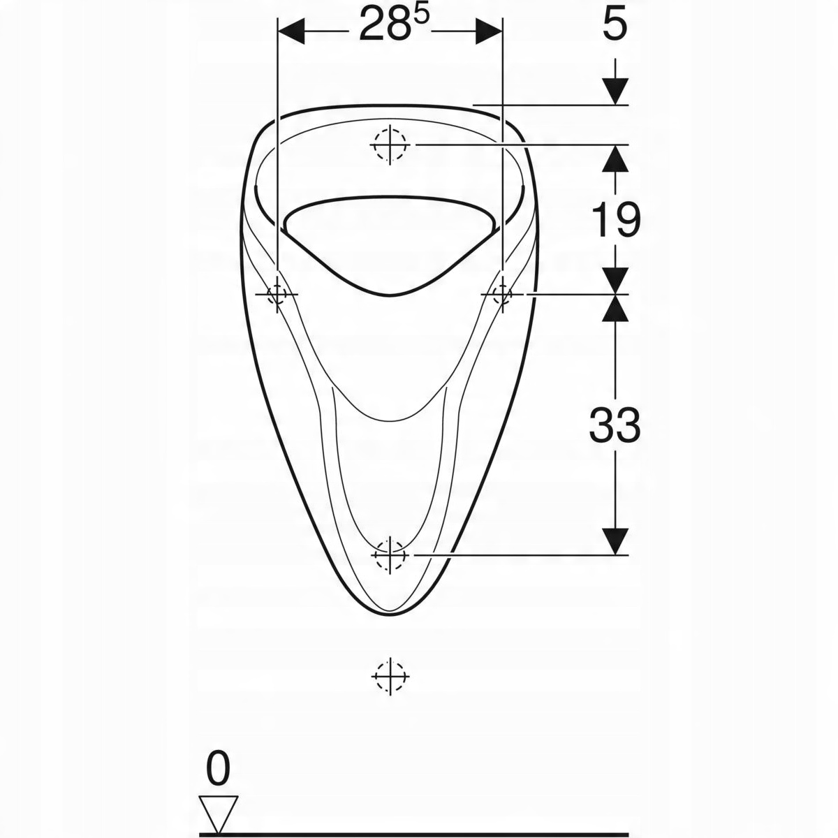 - Пісуар GEBERIT ALEX - задній вхід промивної води, горизонтальний злив у каналізацію