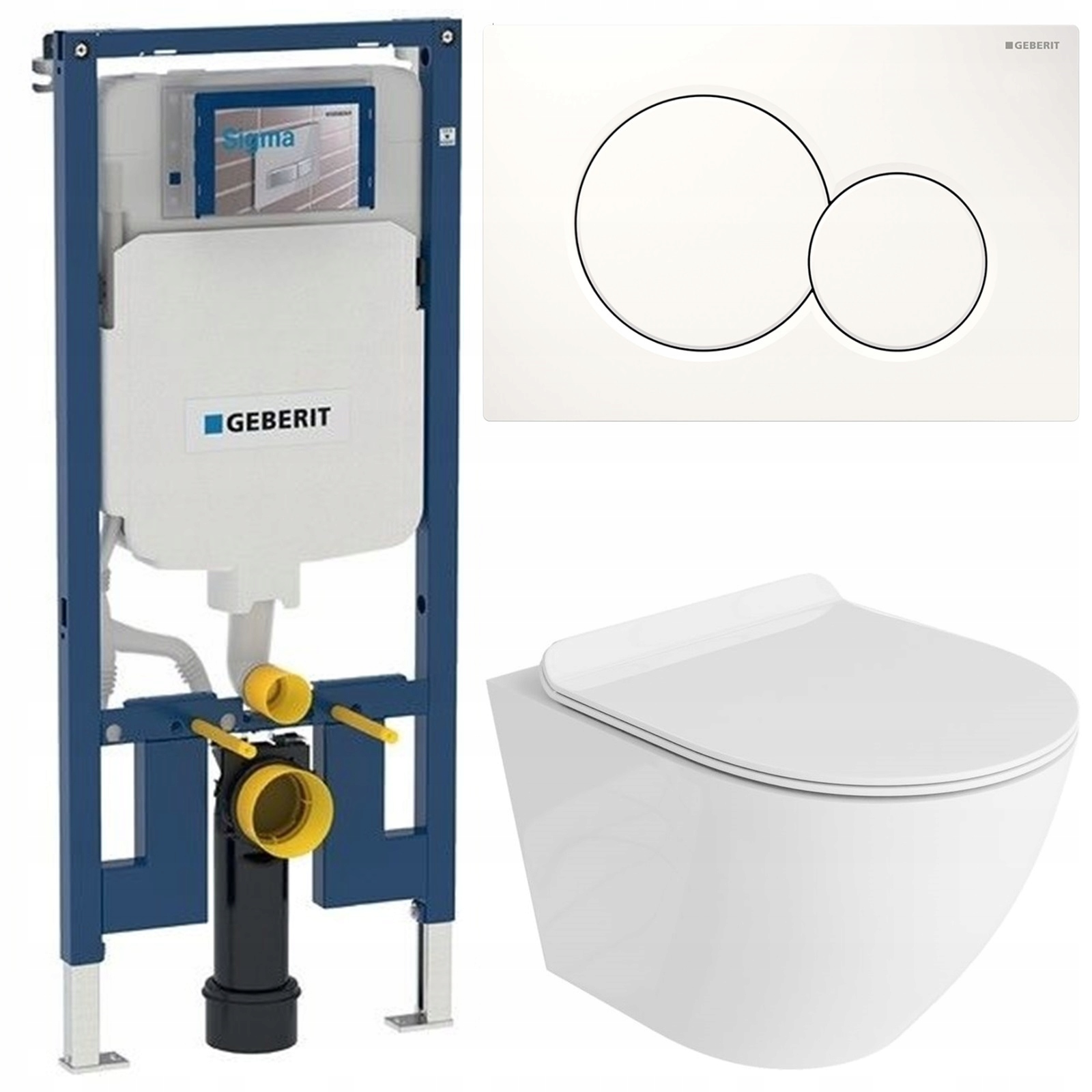 GEBERIT CONCREATED WC SET 8CM SLIM + ПІДВІСНА ЧАША LAVITA WHITE BUTTON