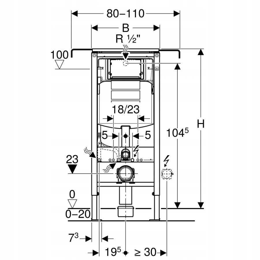 - Швидкість полоскання - заводські налаштування 6 і 3 літрів. >Вхід води R 1/2" із вбудованим кутовим клапаном і маховиком