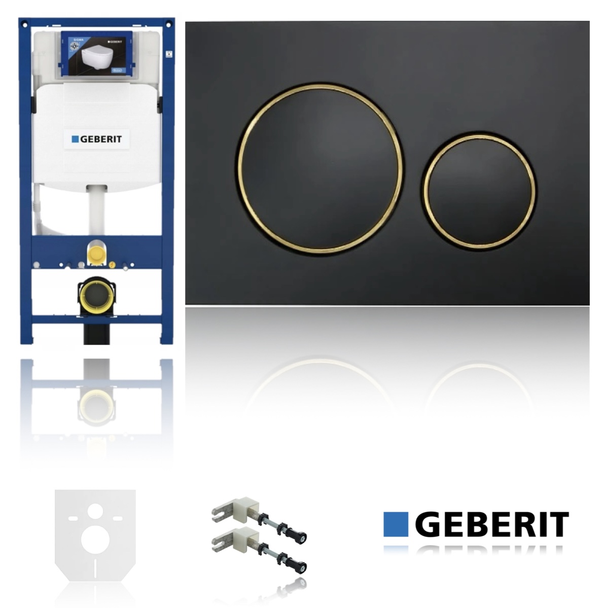 Геберіт Sigma Duofix UP320 Набір. Побудований -прихований туалетний каркас завершений для складання - приховані кронштейни рами. Чорний чорний килимок Золотий килимок кнопка промивання 111.815.00.1